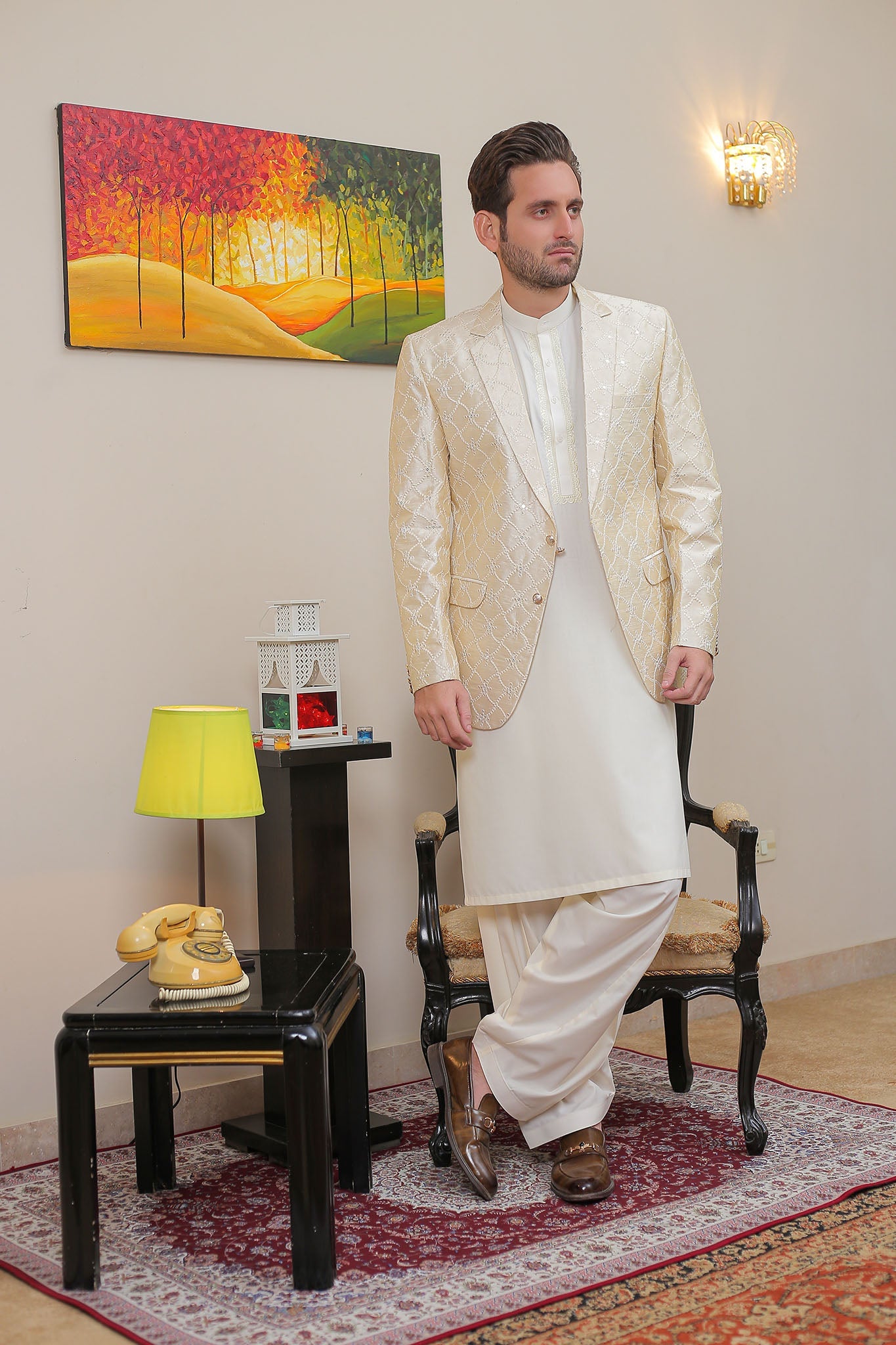 Formal Style Wedding Coat for Men , Raw Silk Fabric , With Rich Embriodrey Design in Thread Work Along With Little Sequnce Work in Matt Gold Colour , Special for Festive And Wedding Wear