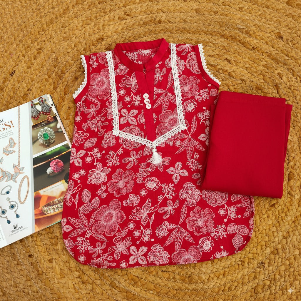 2 pc lawn suit for girls with lace,buttons and tassels.