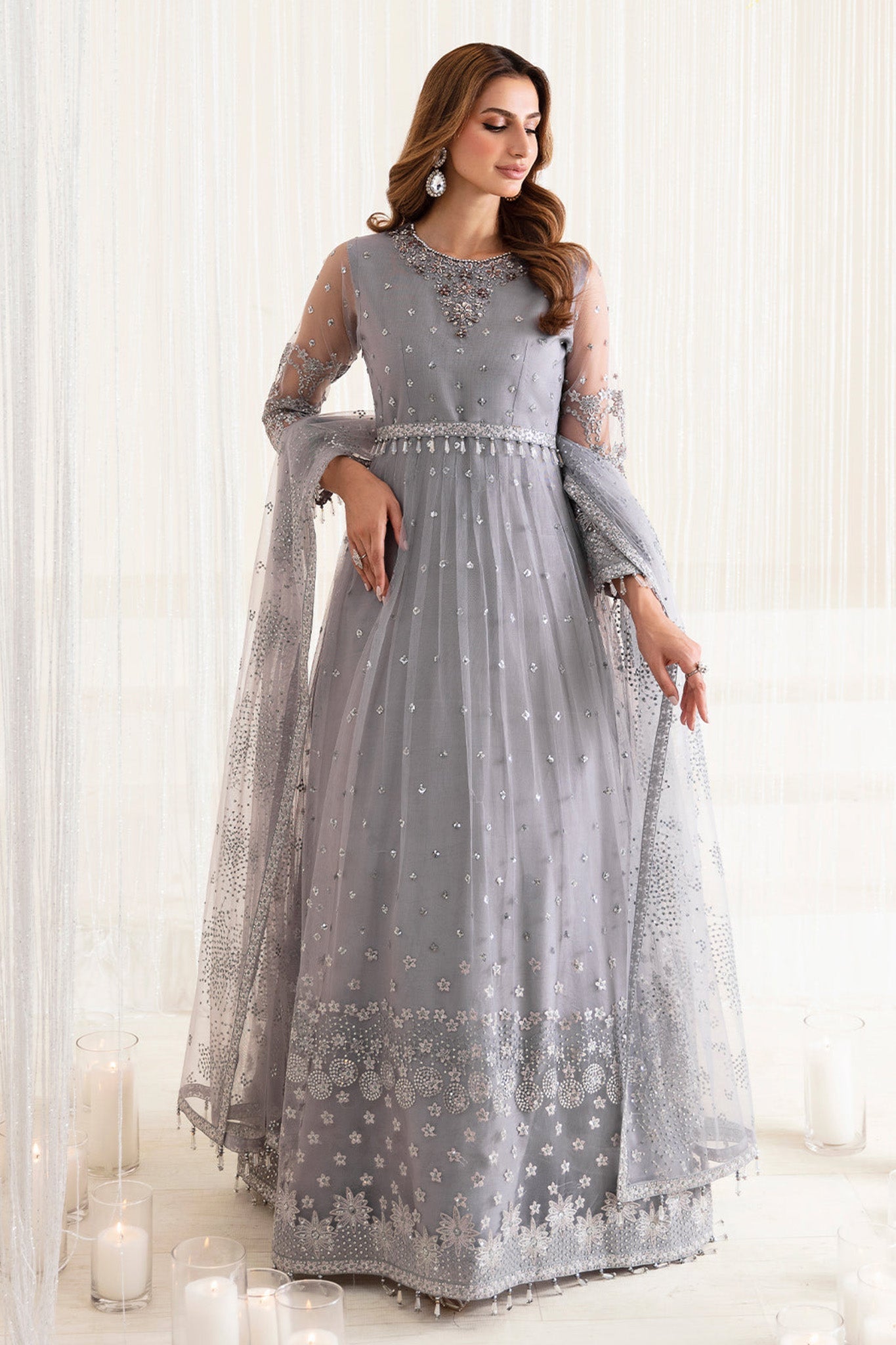 Embroidered Hand Embellished Neck Patch Organza Embroidered Front & Back Yoke Net Embroidered Front & Back Net Embroidered Sleeves Net...