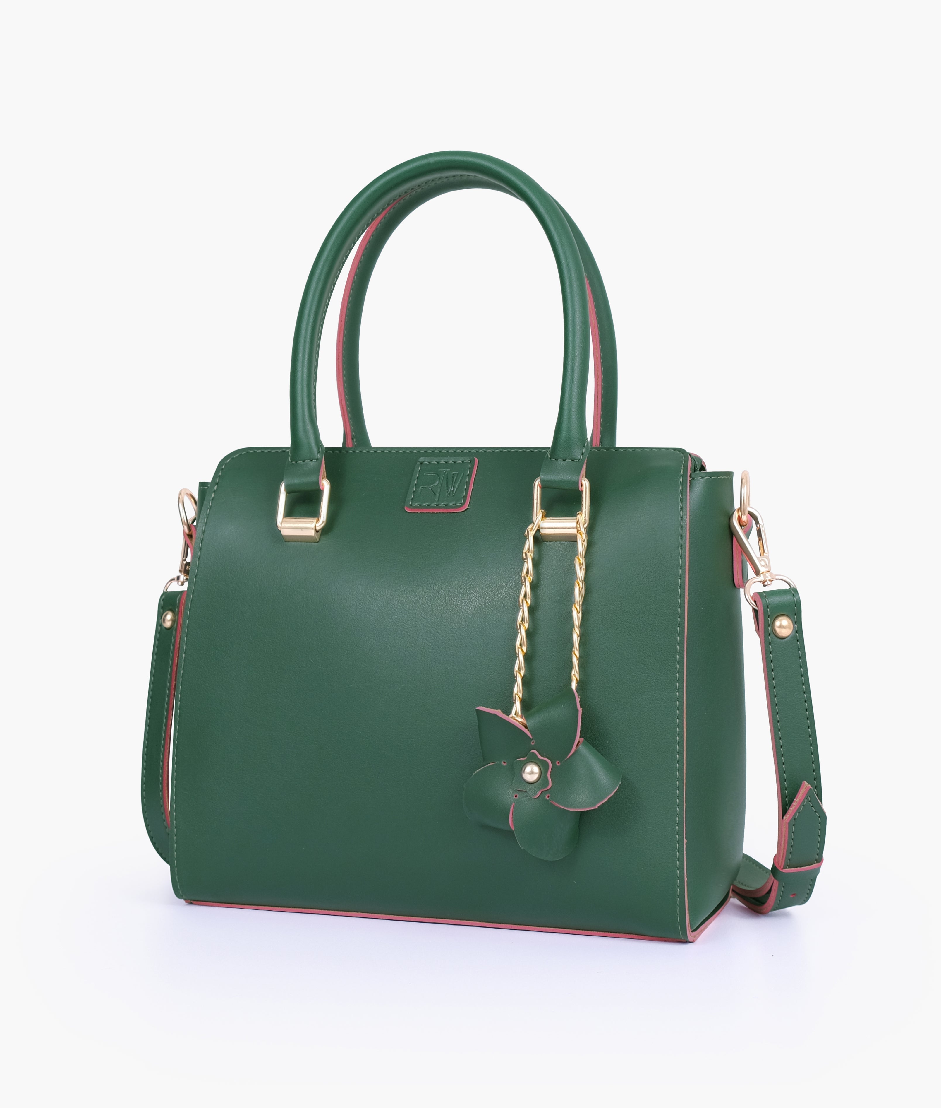 Width: 10 inches Height: 9 inches Depth: 4 inches One main zipper compartment. Long adjustable strap. Adorable flower charm. Material:...