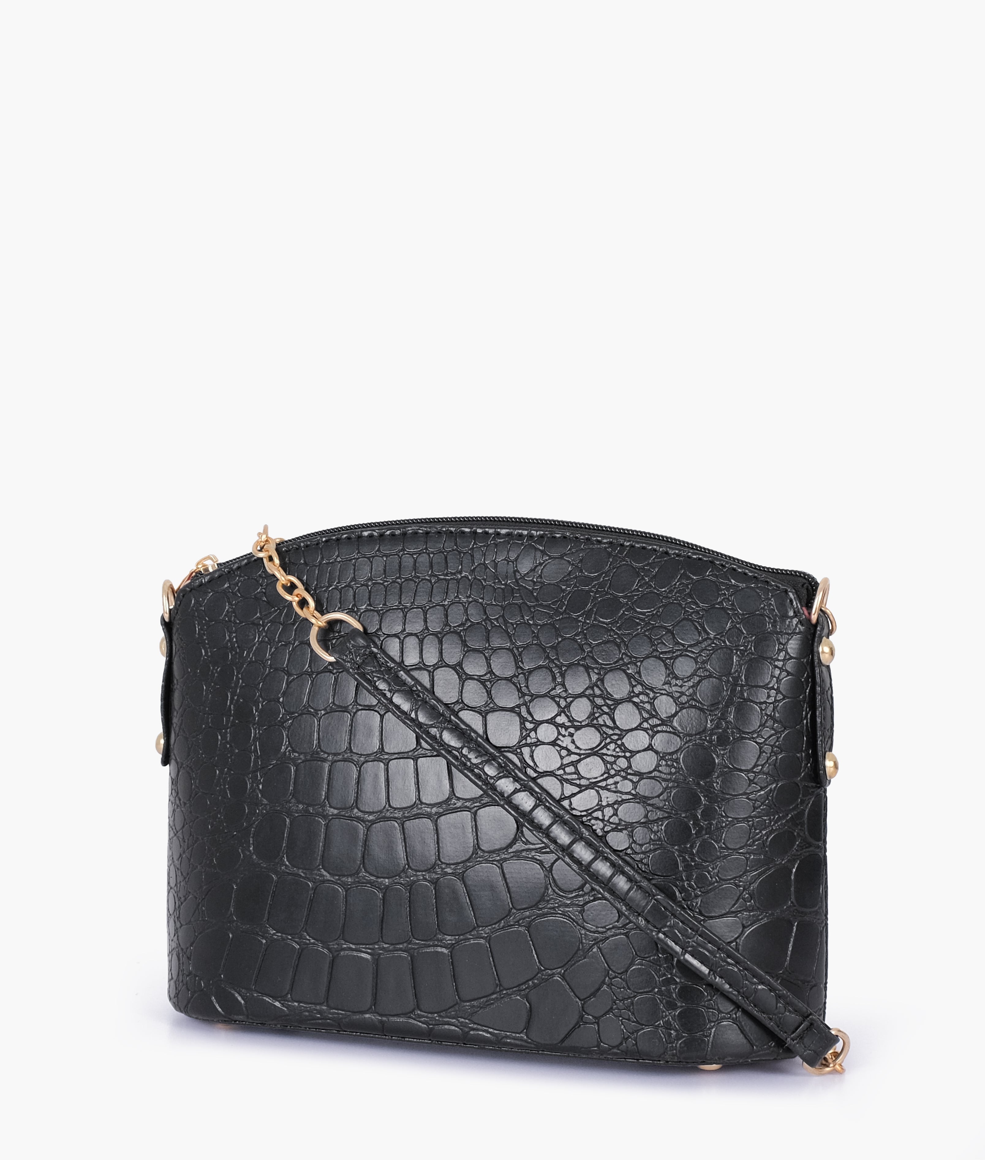RTW Creation - Black crocodile with chain strap cross-body bag
