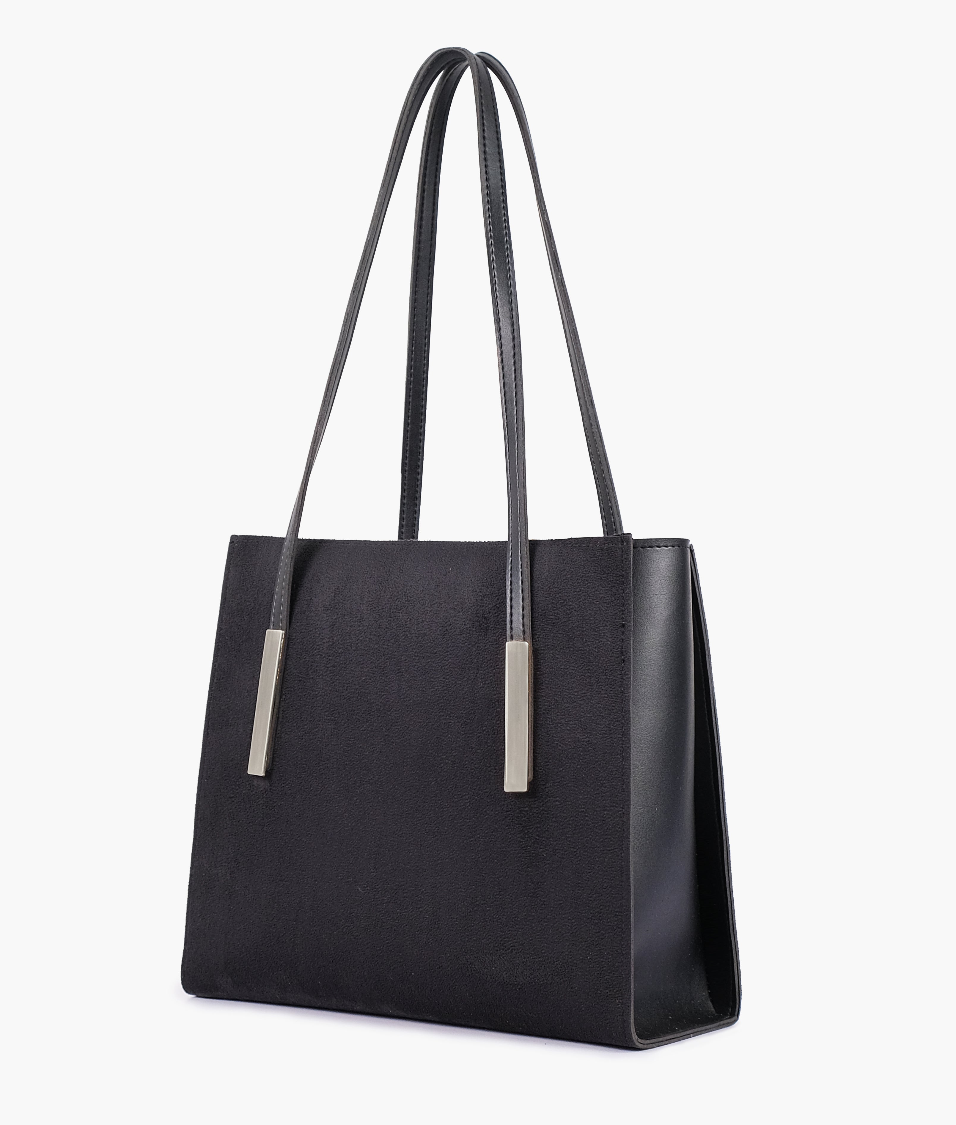 RTW Creation - Black suede zipper shoulder bag with long handle