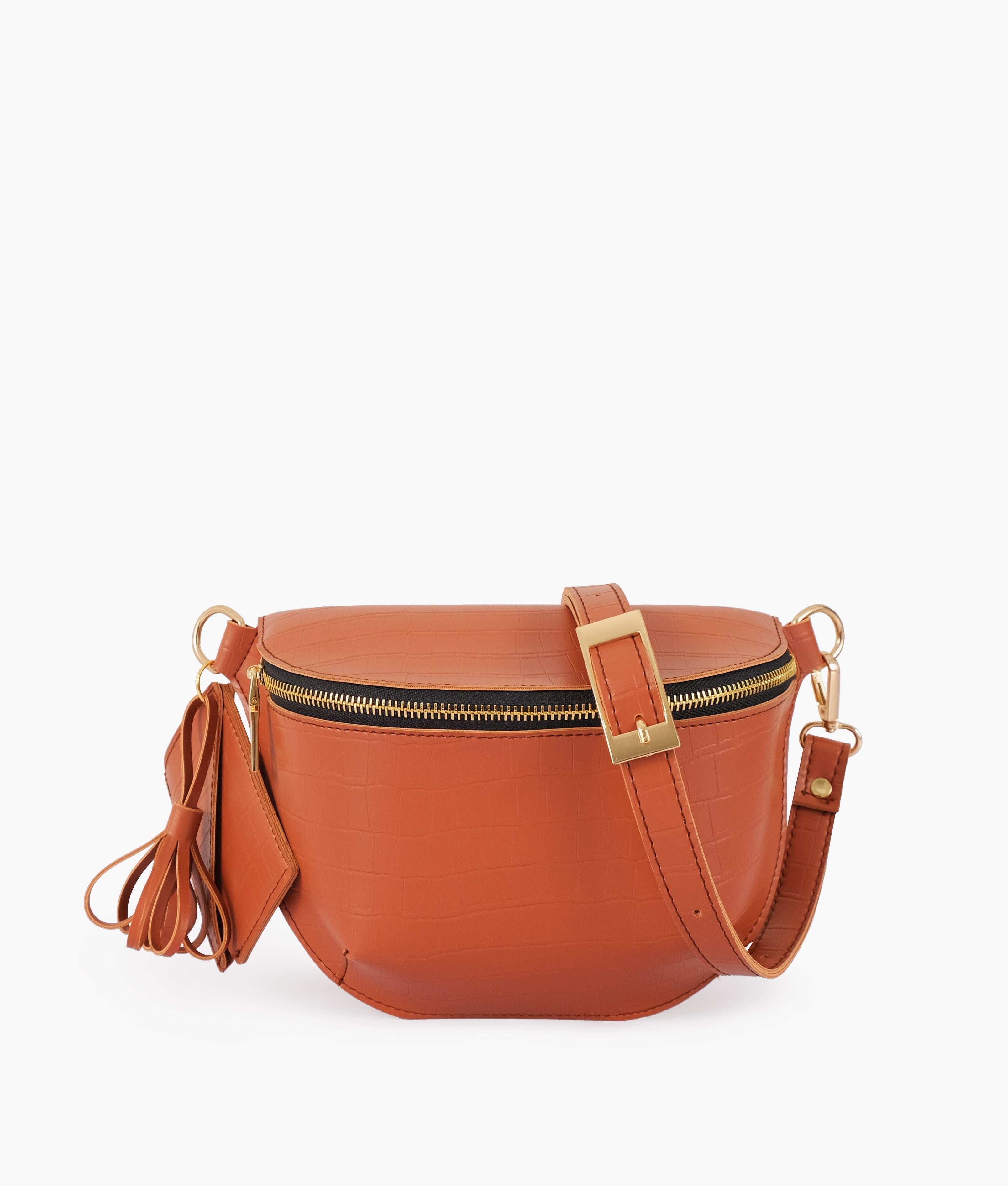 Width (top): 9.5 inches Width (bottom): 7 inches Height:?.5 inches Depth: 2.5 inches One main compartment with zipper. One slide...