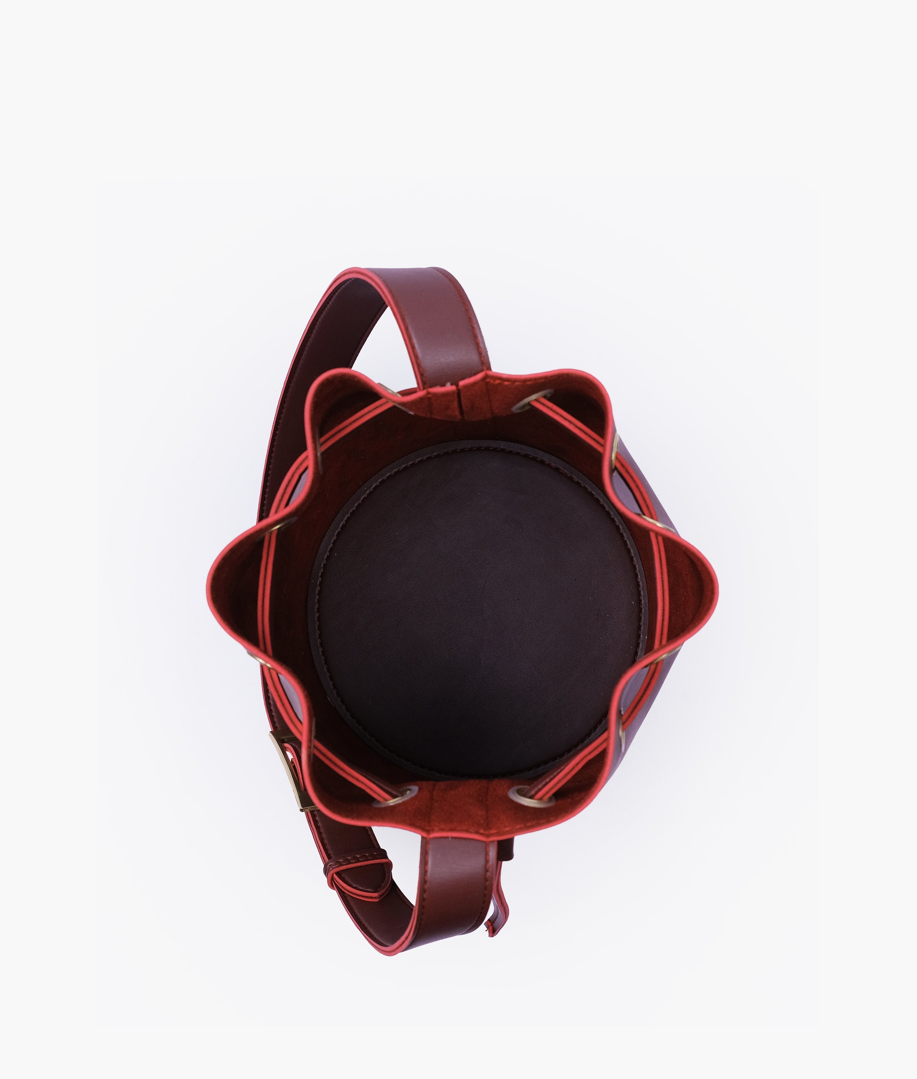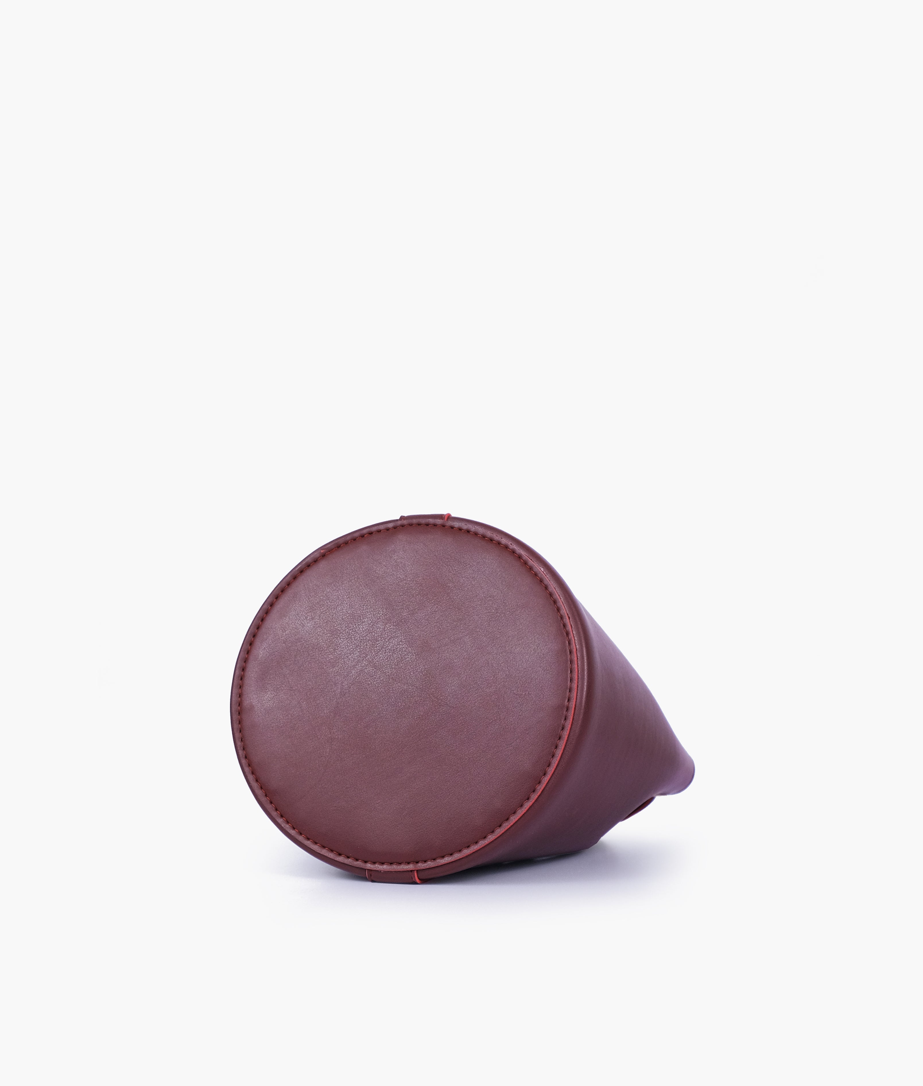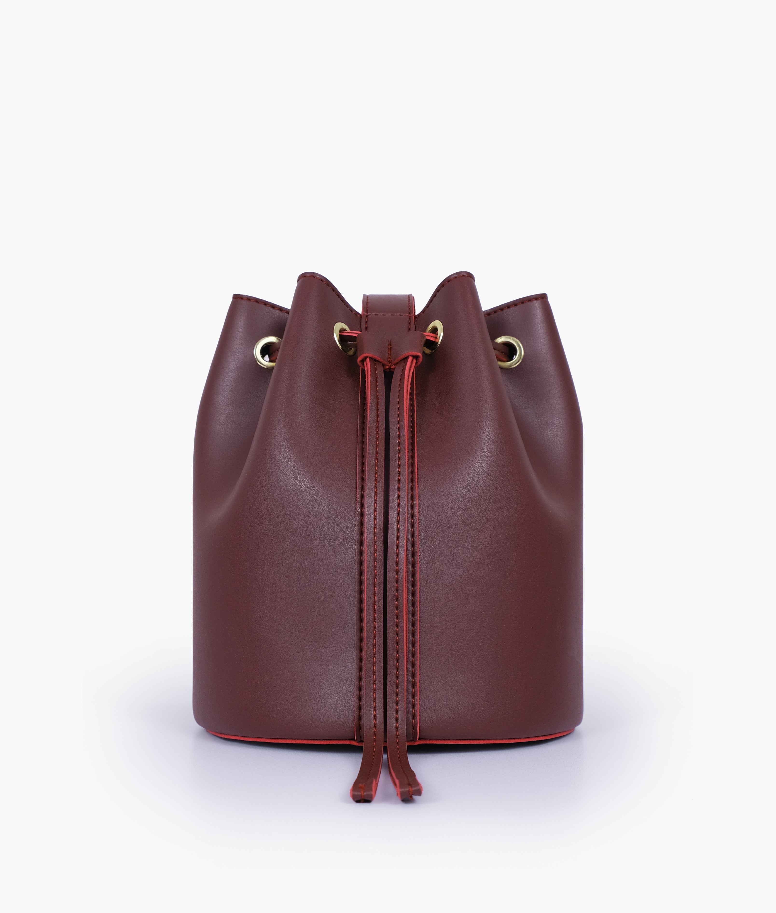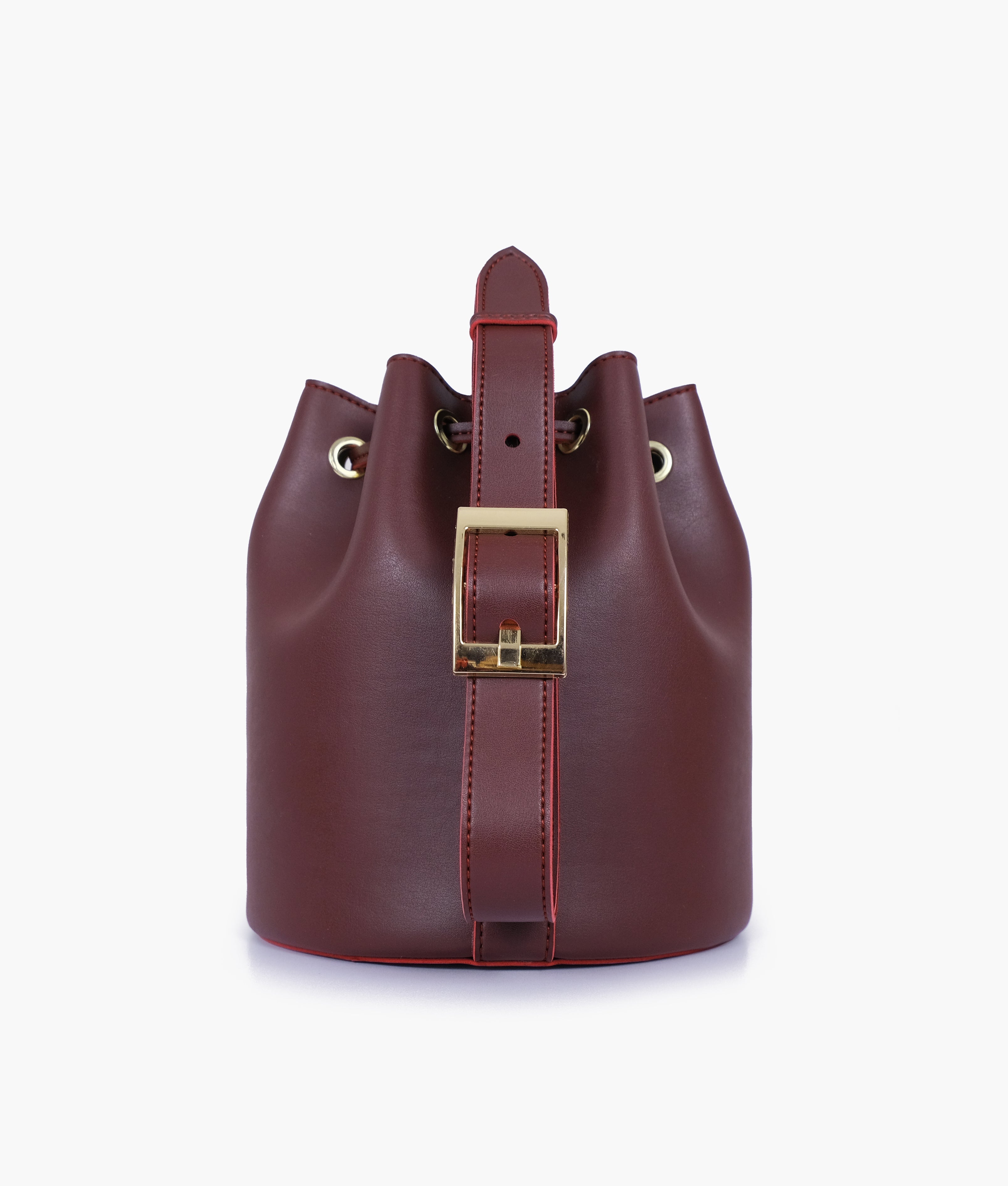 Width: 7.5 inches Height: 9 inches Depth: 7.5 inches One main compartment secured by draw-strings. Adjustable shoulder strap. Material: Faux...