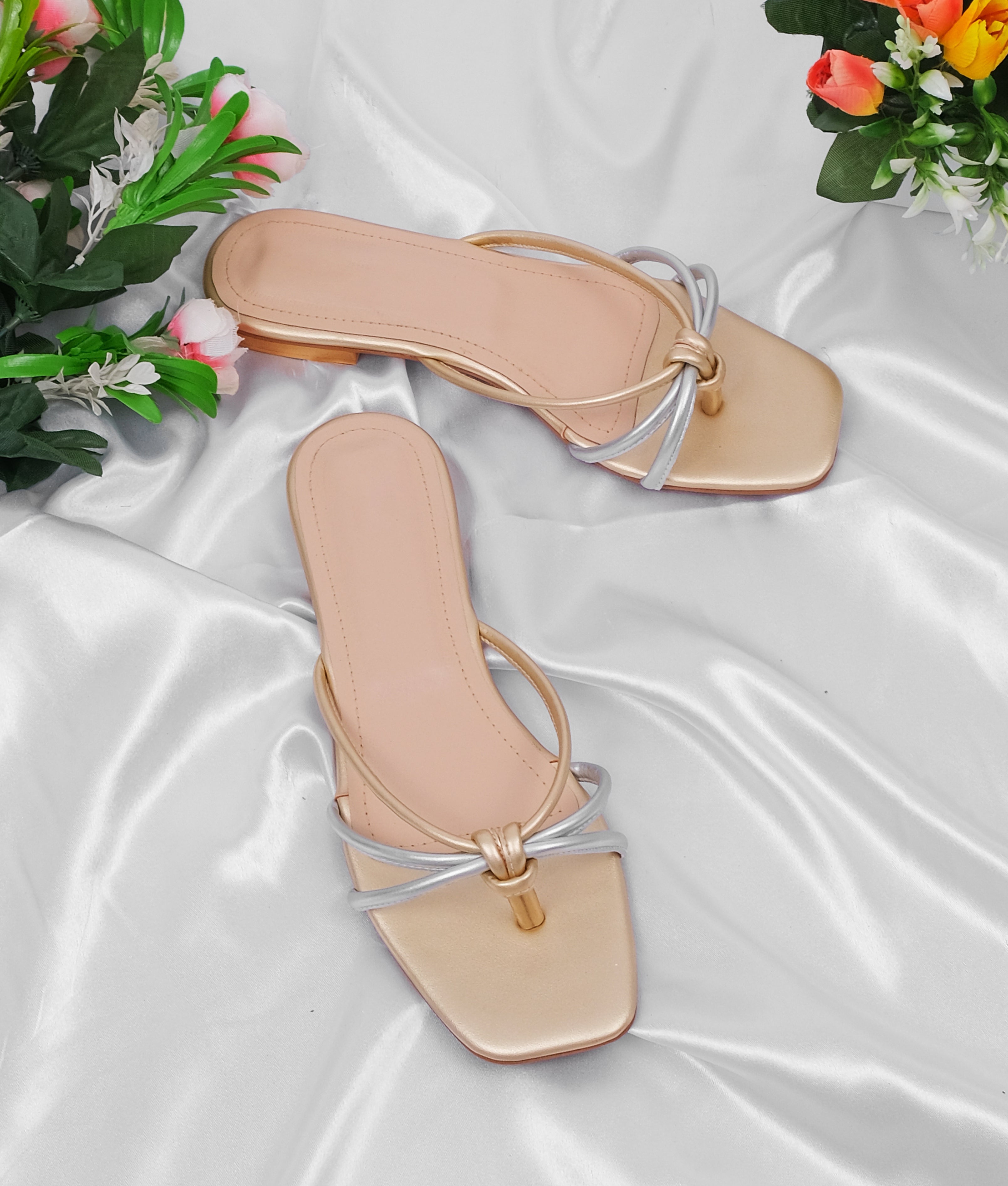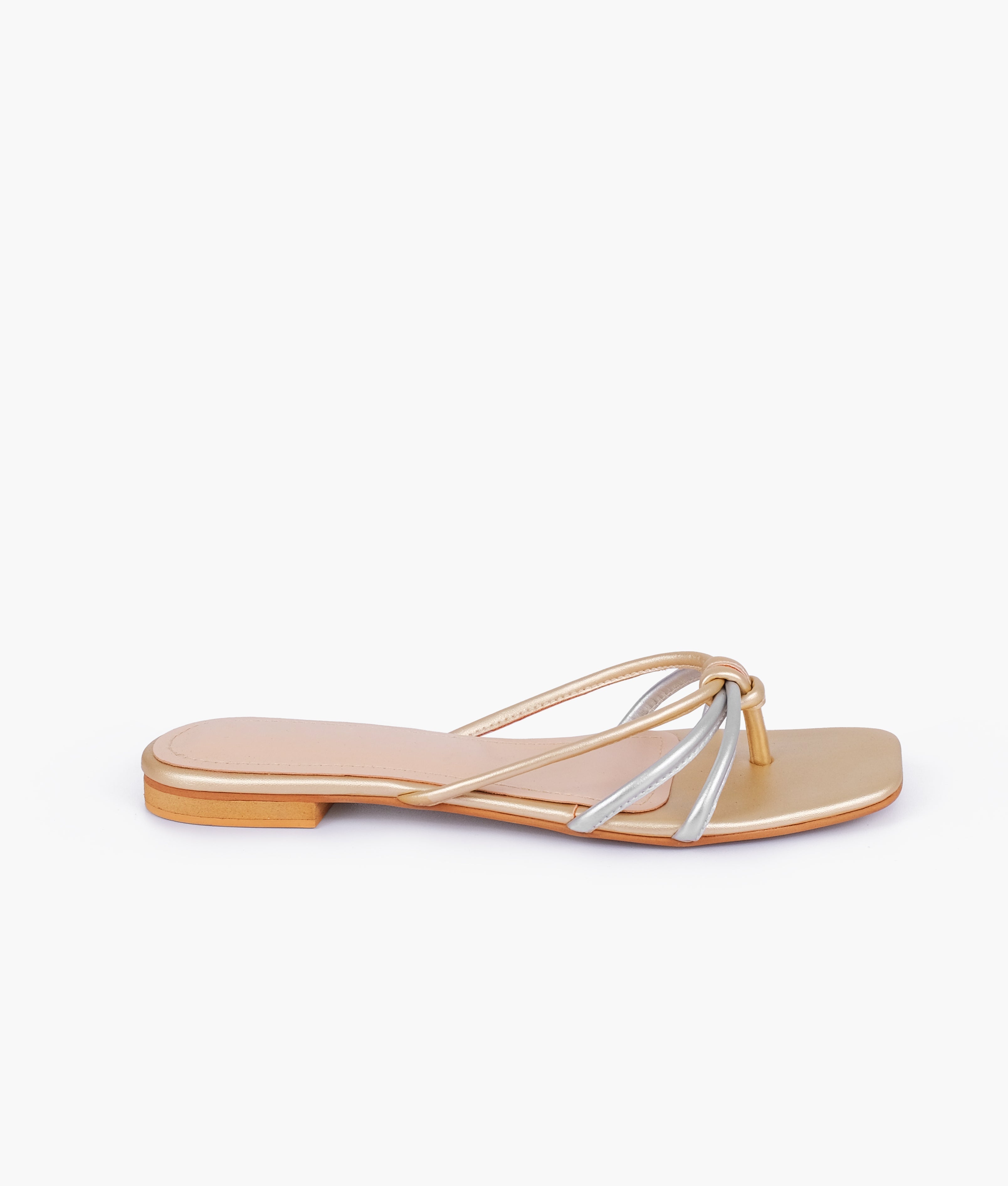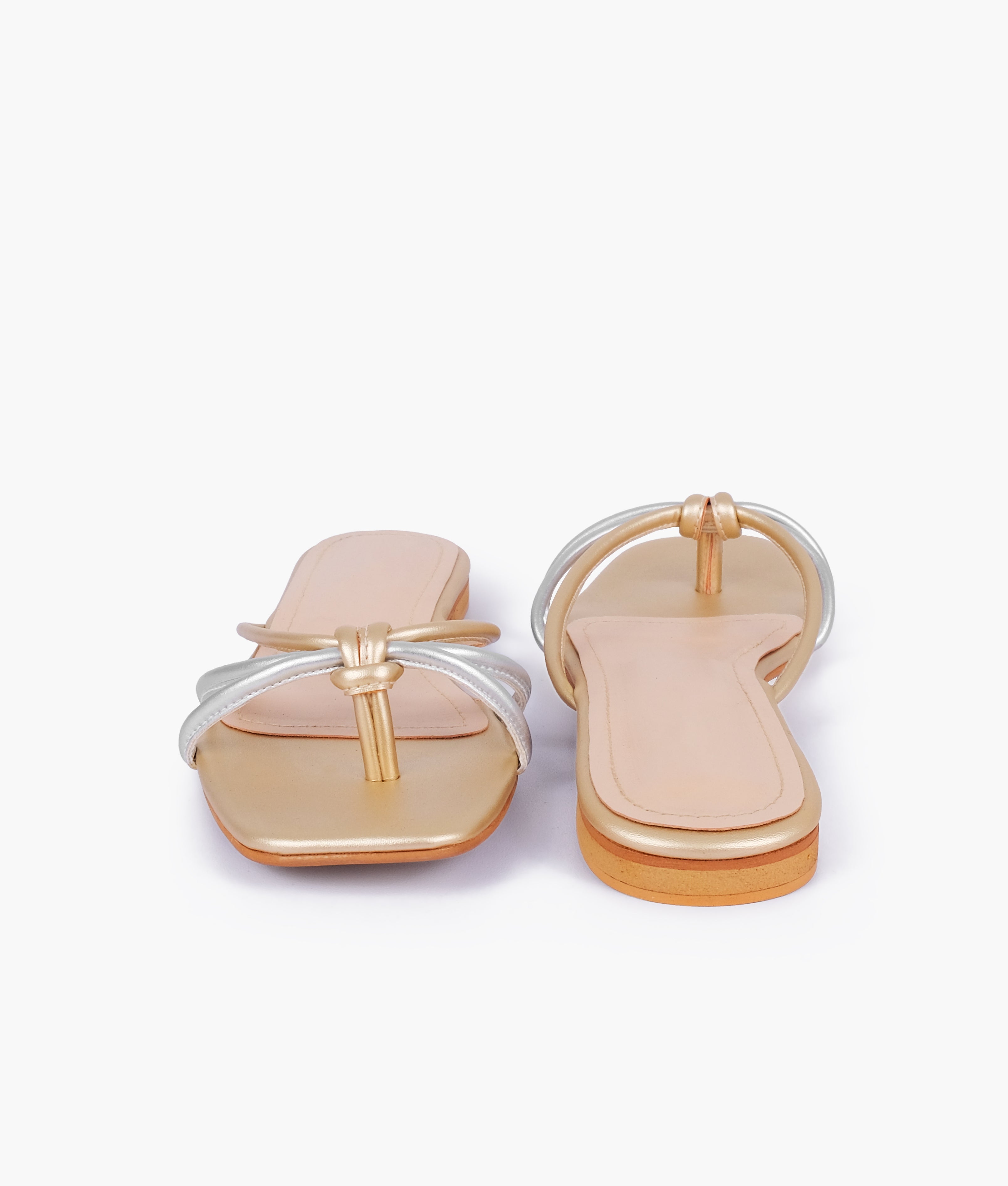 Shine bright with these golden thong sandals an essential for effortless casual elegance Their metallic finish and minimalist design make them a standout choice for adding a touch of glamour to your laidback looks.