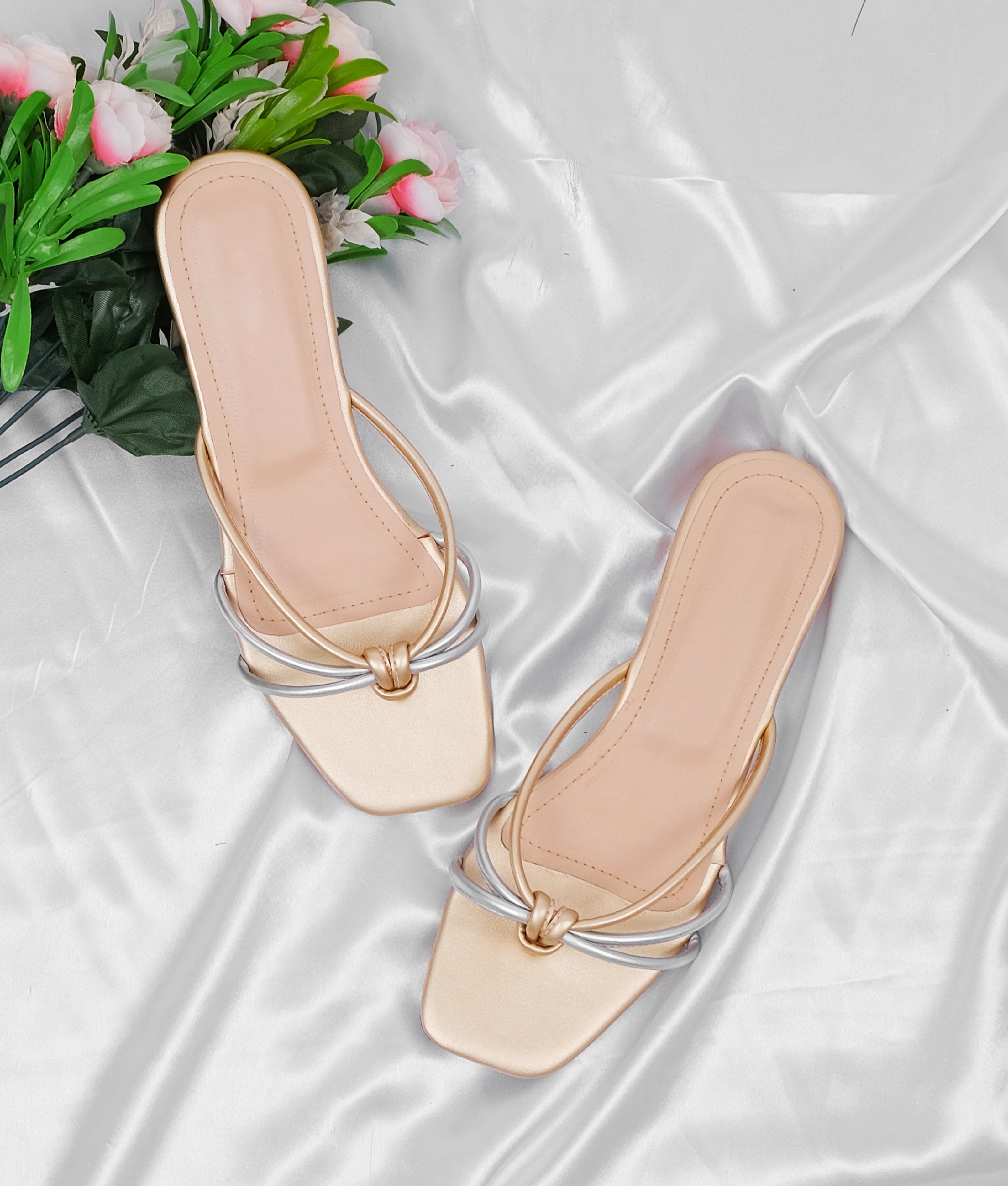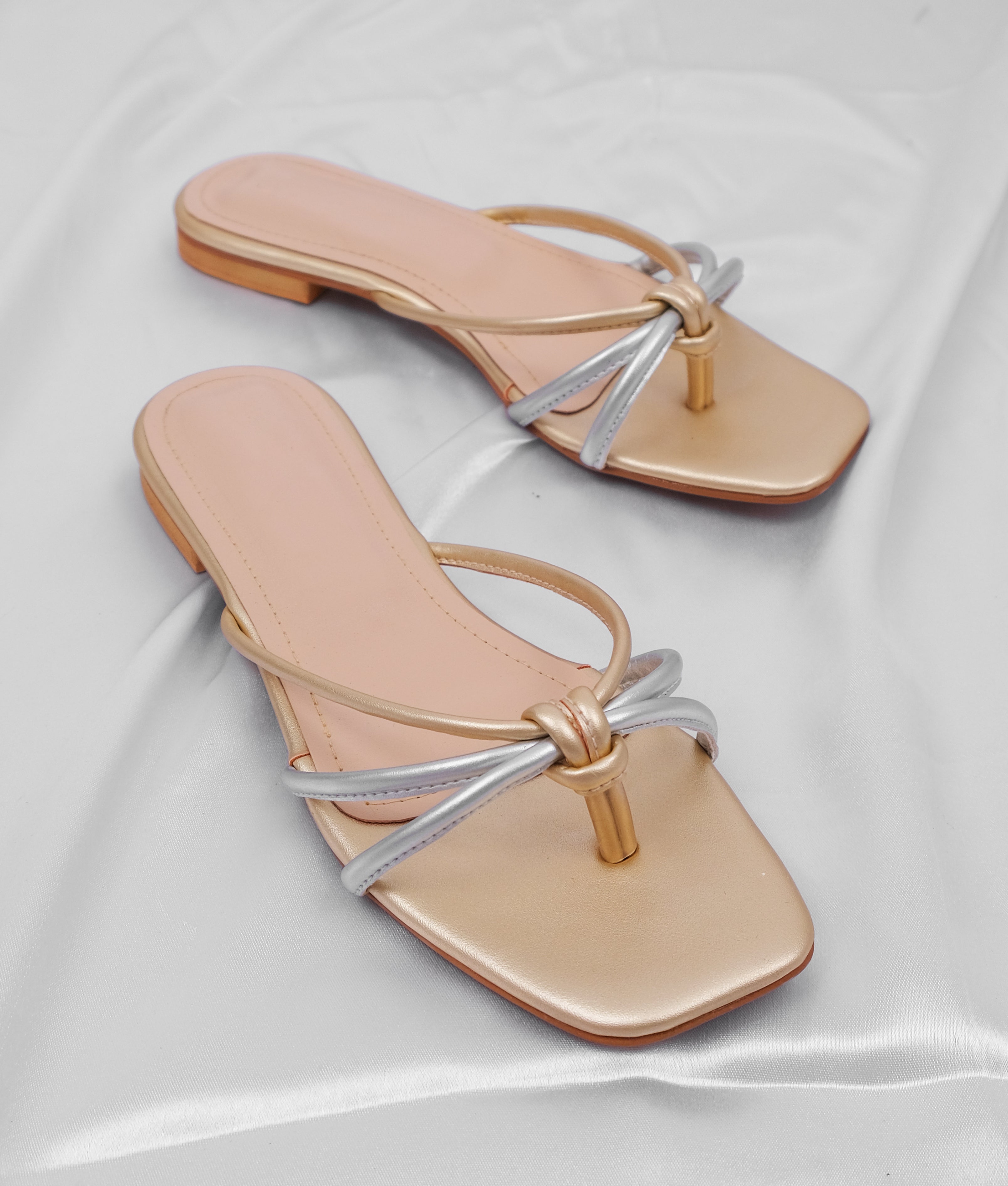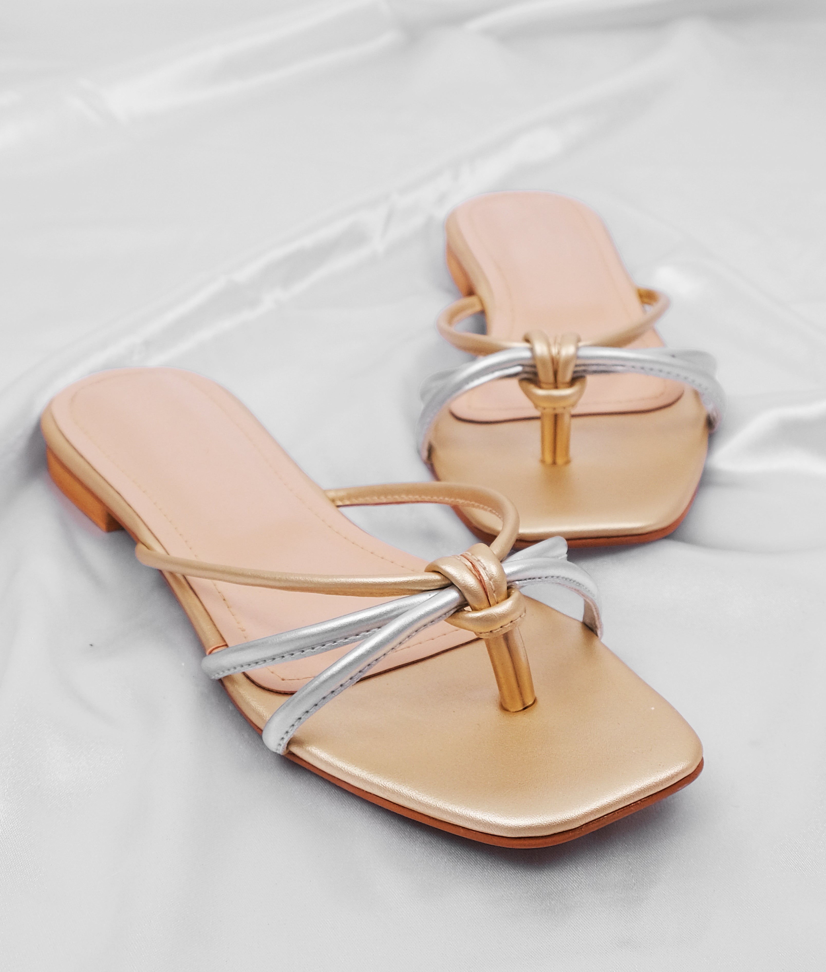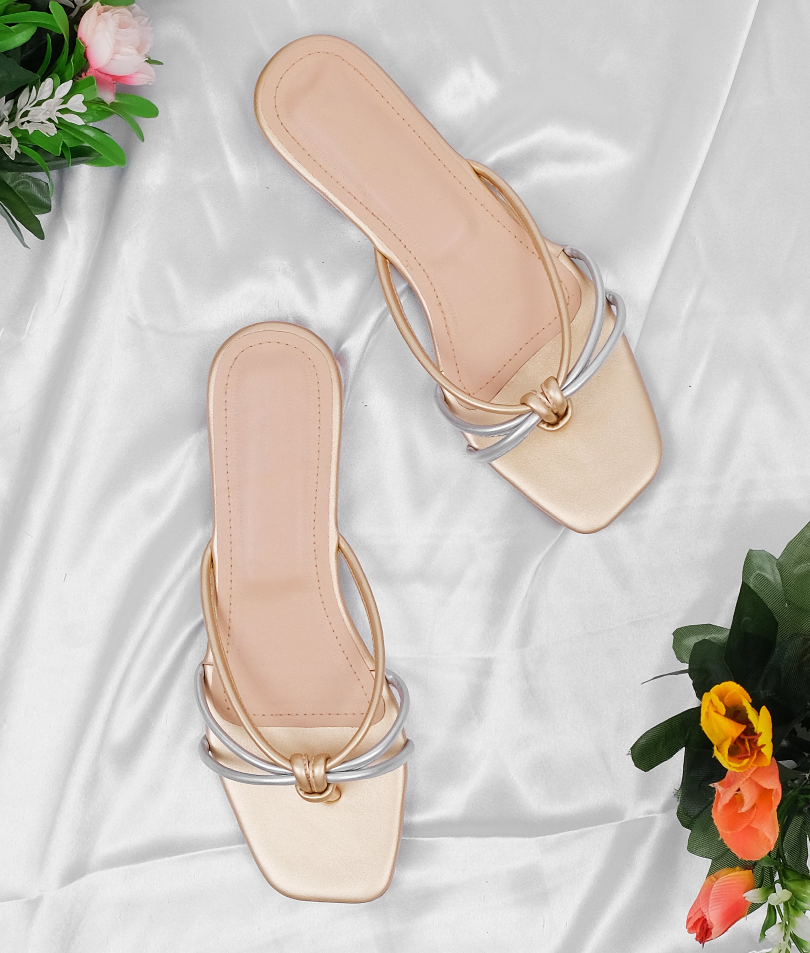 Shine bright with these golden thong sandals an essential for effortless casual elegance Their metallic finish and minimalist design make them a standout choice for adding a touch of glamour to your laidback looks.