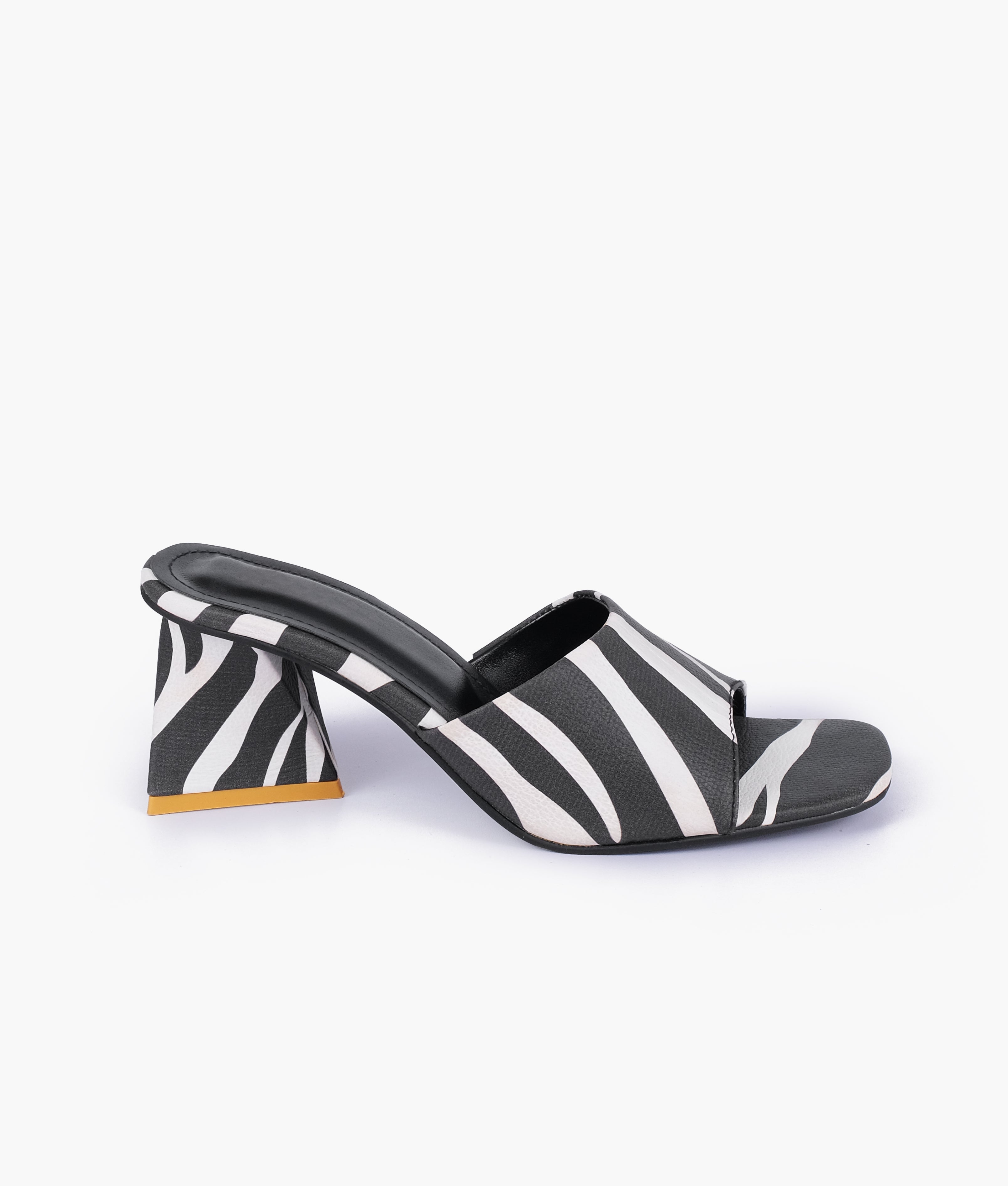 Make a bold statement with these zebra heeled mules an essential addition for any chic occasion Featuring a striking pattern and a fashion forward design these mules are perfect for those who dare to stand out with confidence and flair.