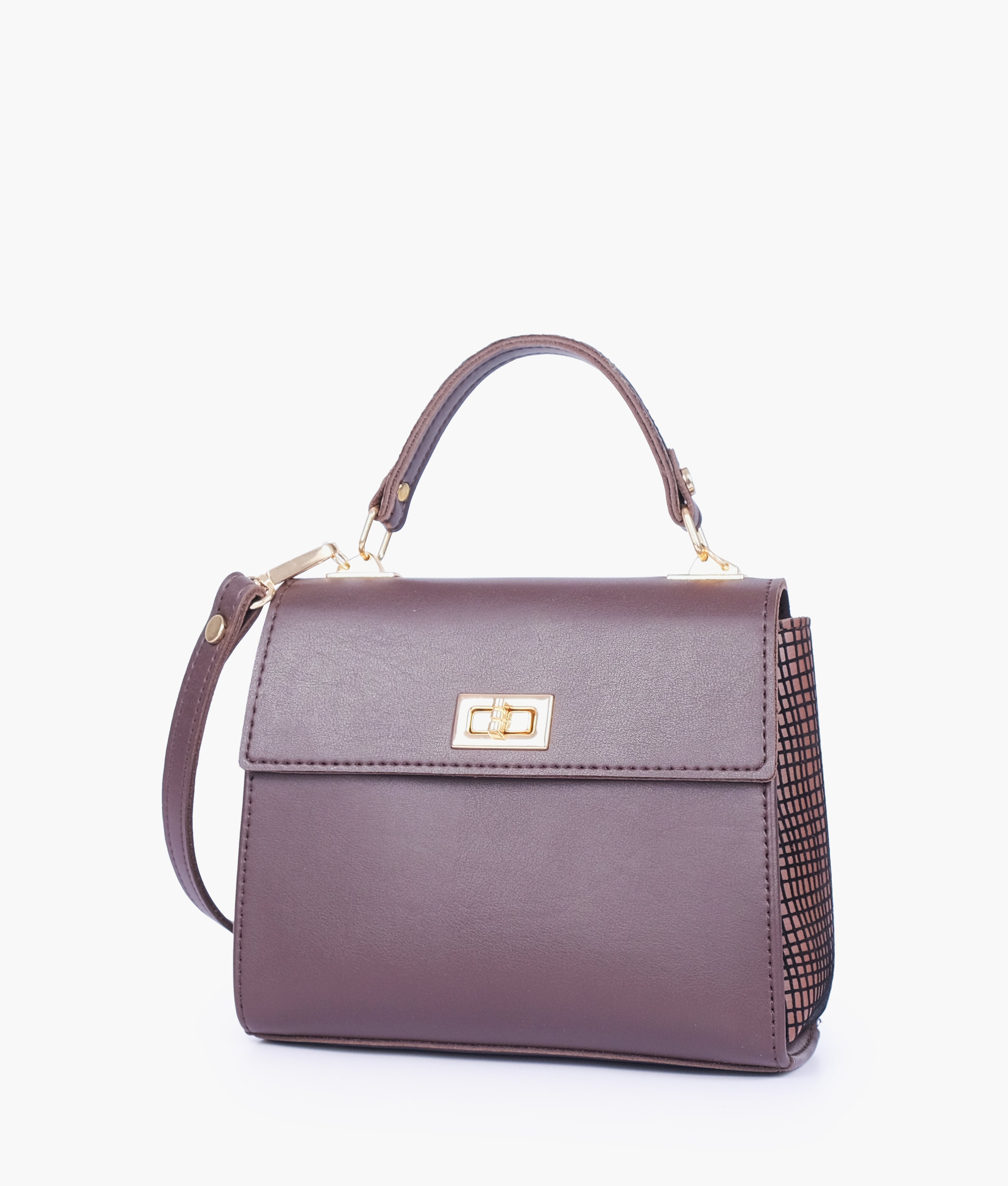 Width: 8 inches Height: 6.5 inches Depth: 3 inches One main compartment secured with twist-lock. One inside zipper pocket. One...