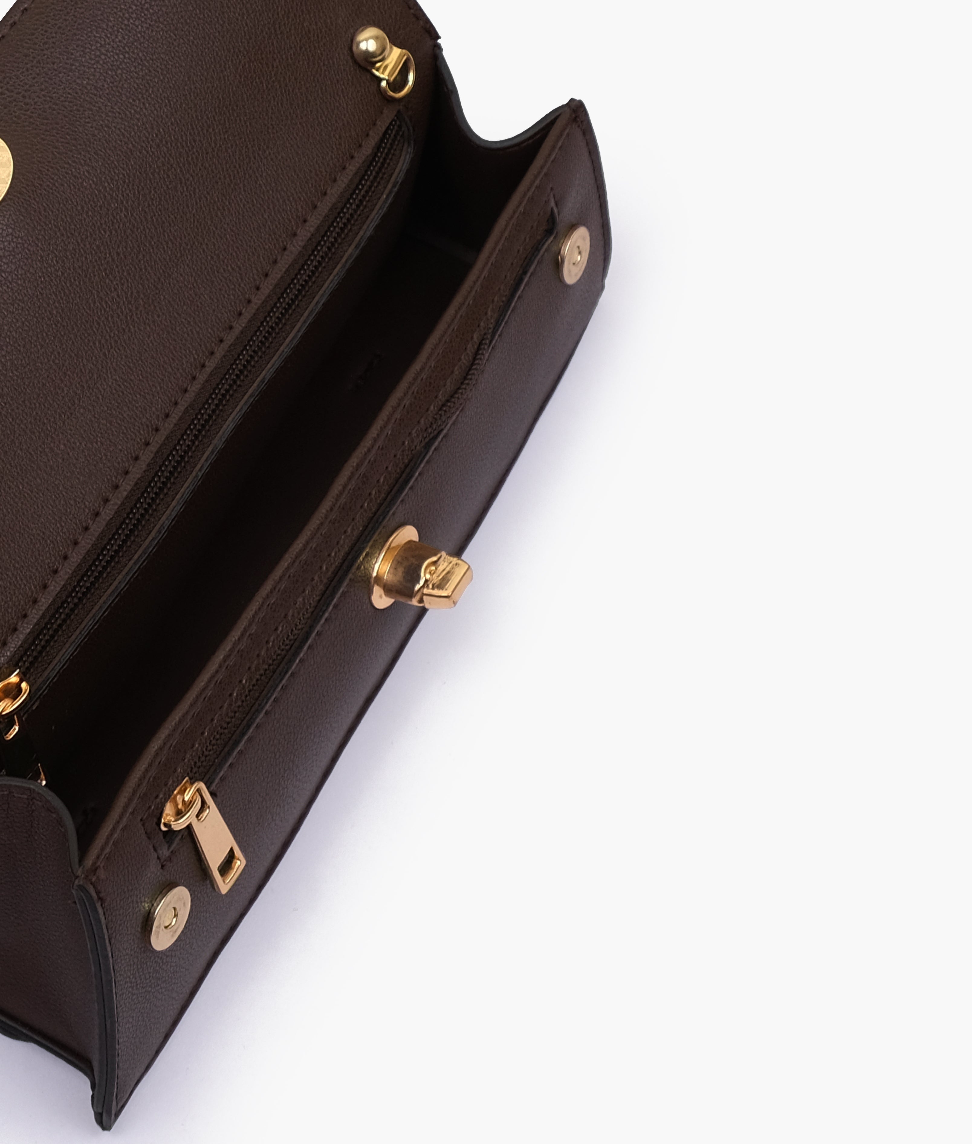 Width: 10.5 inches Height: 3.75 inches Depth: 2.75 inches One main compartment under the flap with twist-lock closure. Two zipper...