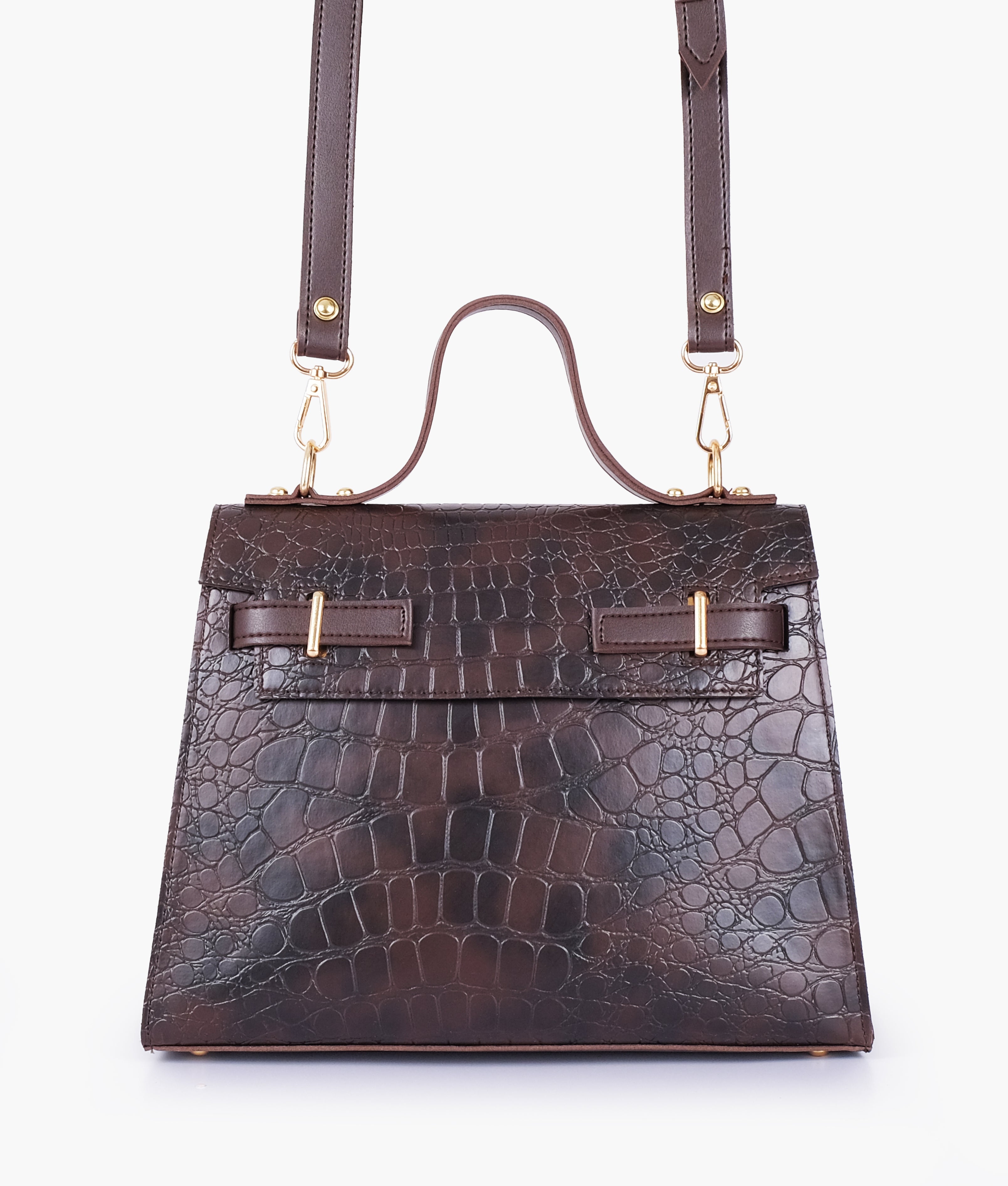 RTW Creation - Dark chocolate brown crocodile cross-body bag with top-handle