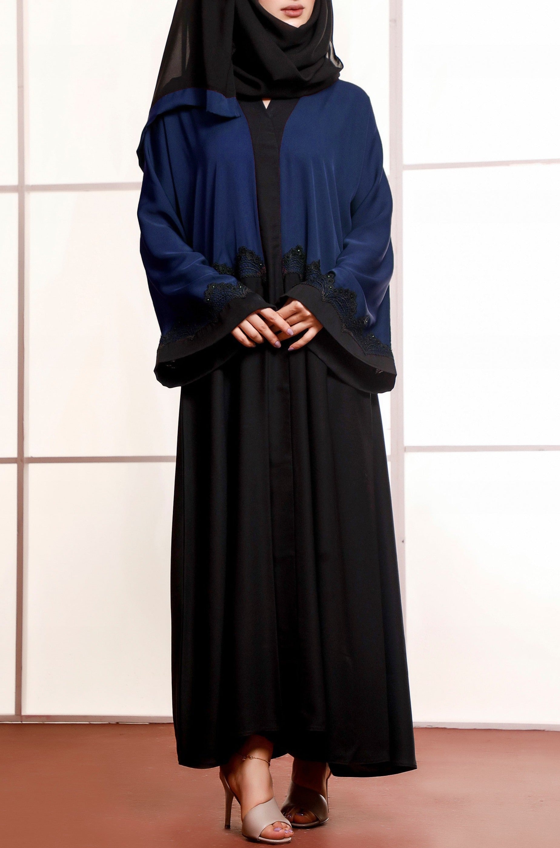 Trendy lace on bodice abaya is a perfect look of elegance and simple with a stylish color combination making it appealing on everyday wear and comes along with pure Korean Chiffon Sheila
