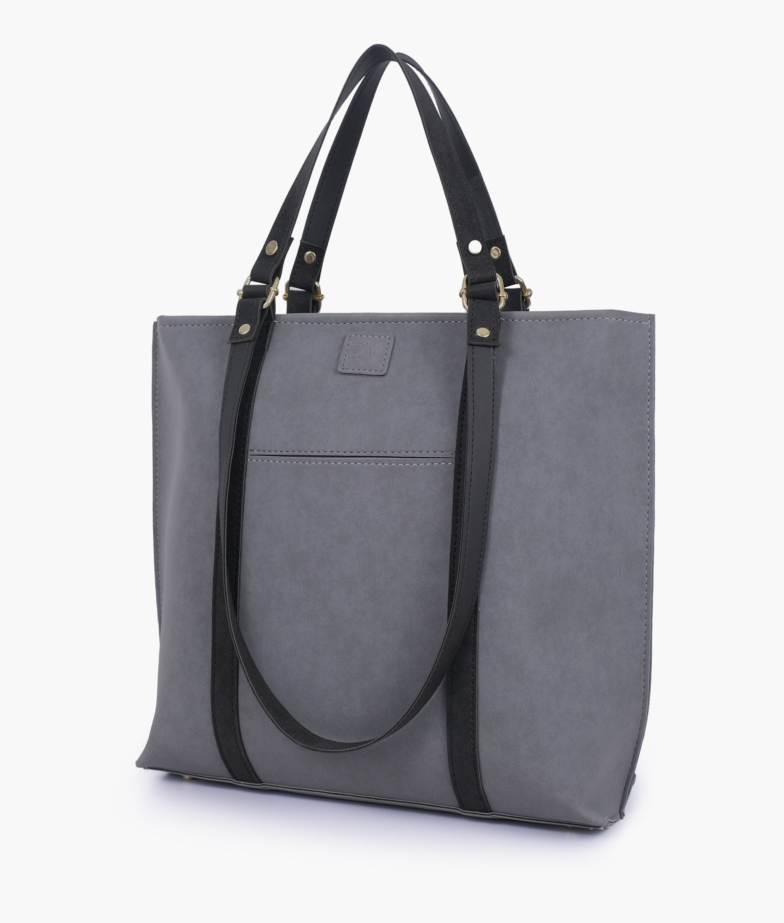RTW Creation - Grey and black mocha suede double-handle tote