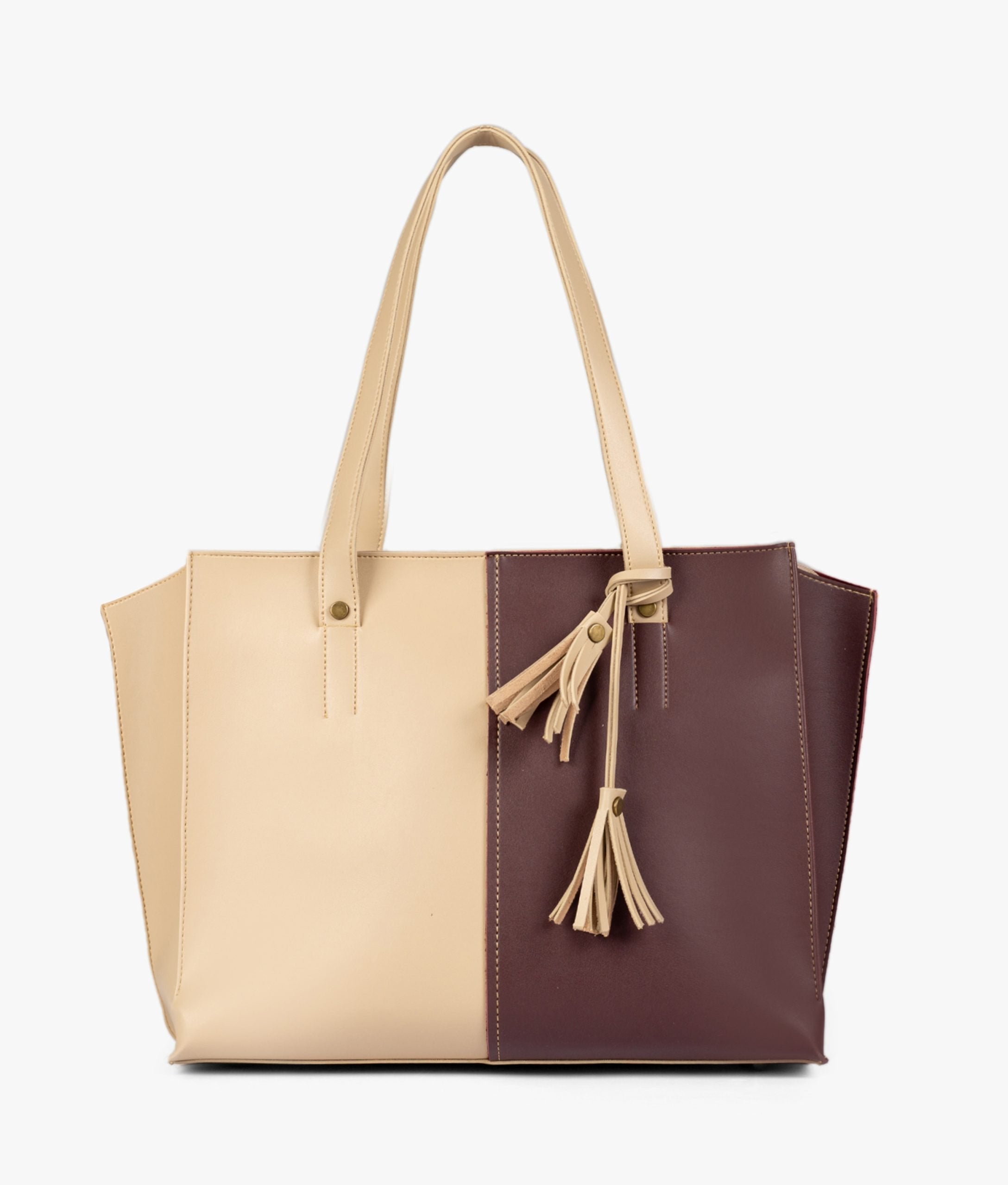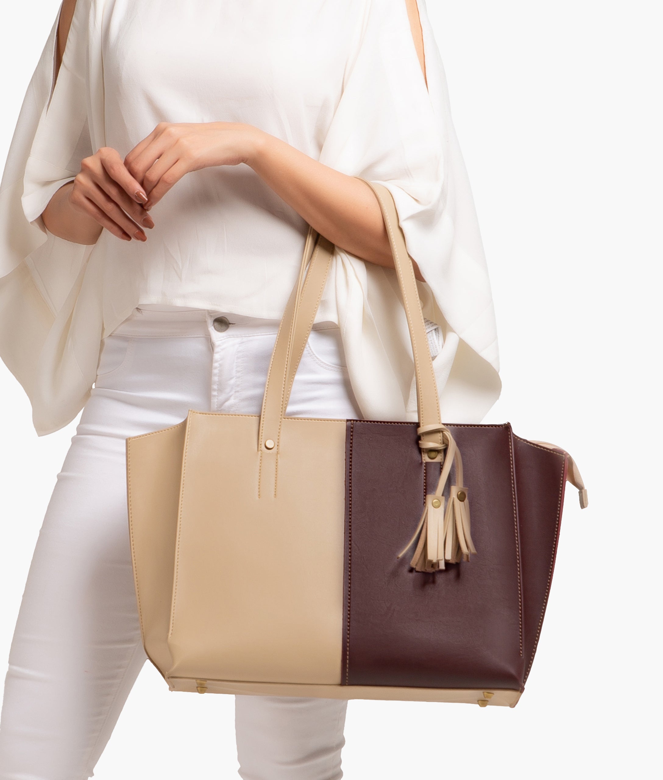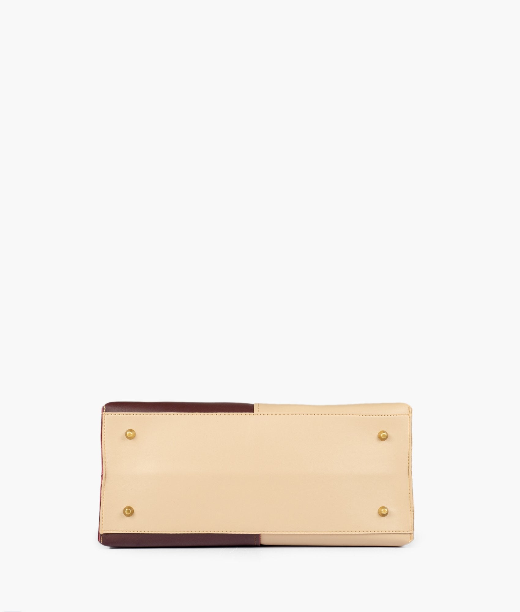 RTW Creation - Off-white and burgundy over the shoulder tote bag