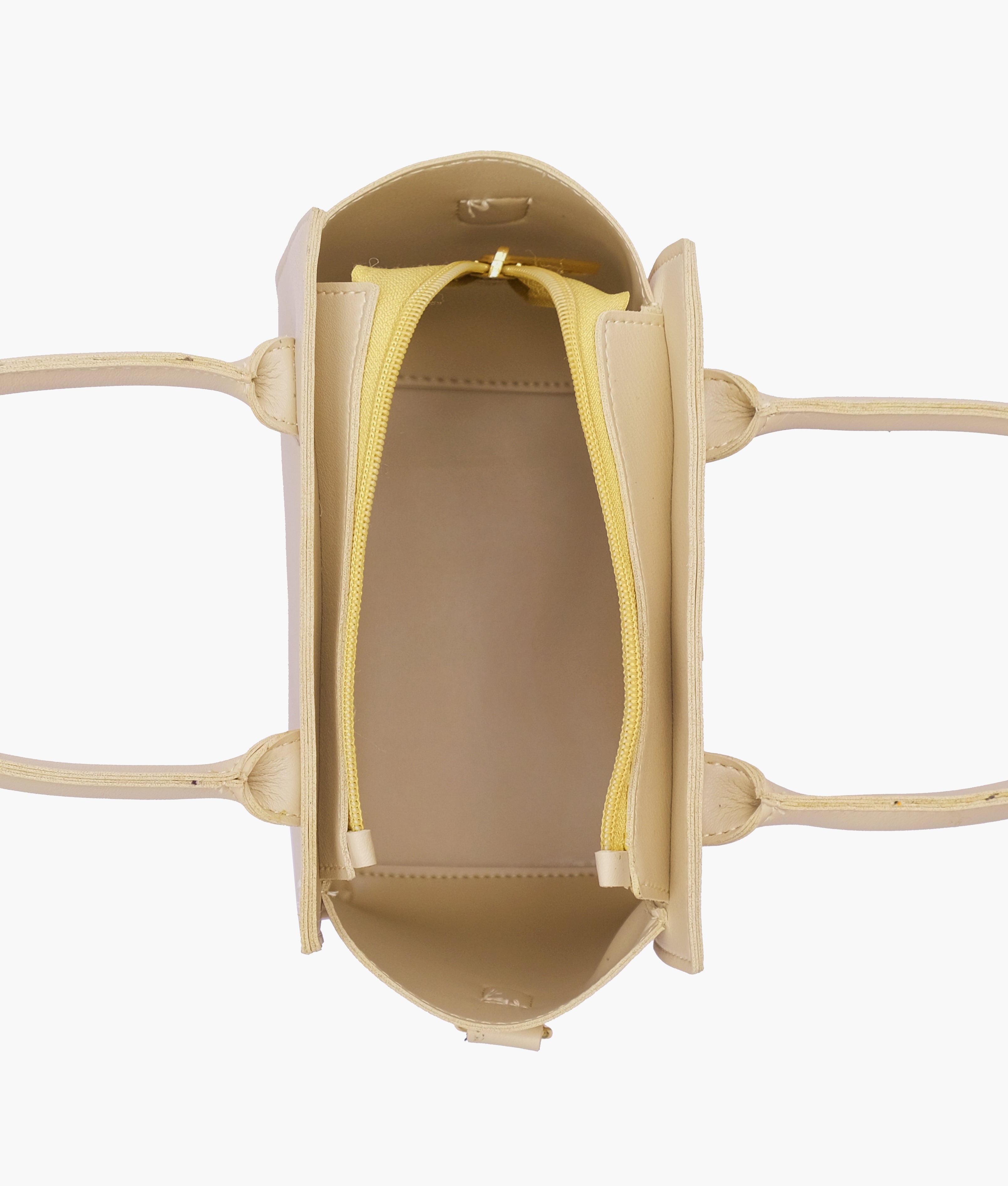 Width: 9.25 inches Height: 8.5 inches Depth: 4.5 inches One main zipper compartment. Detachable long adjustable shoulder strap. Material: Faux...