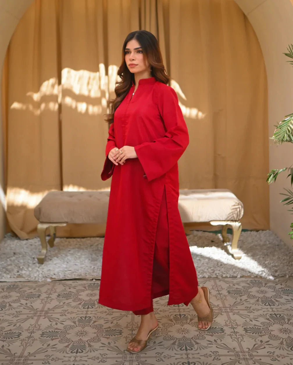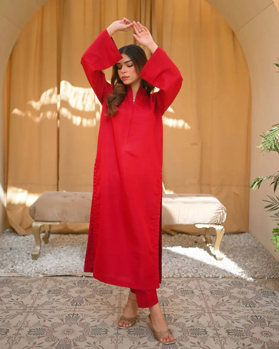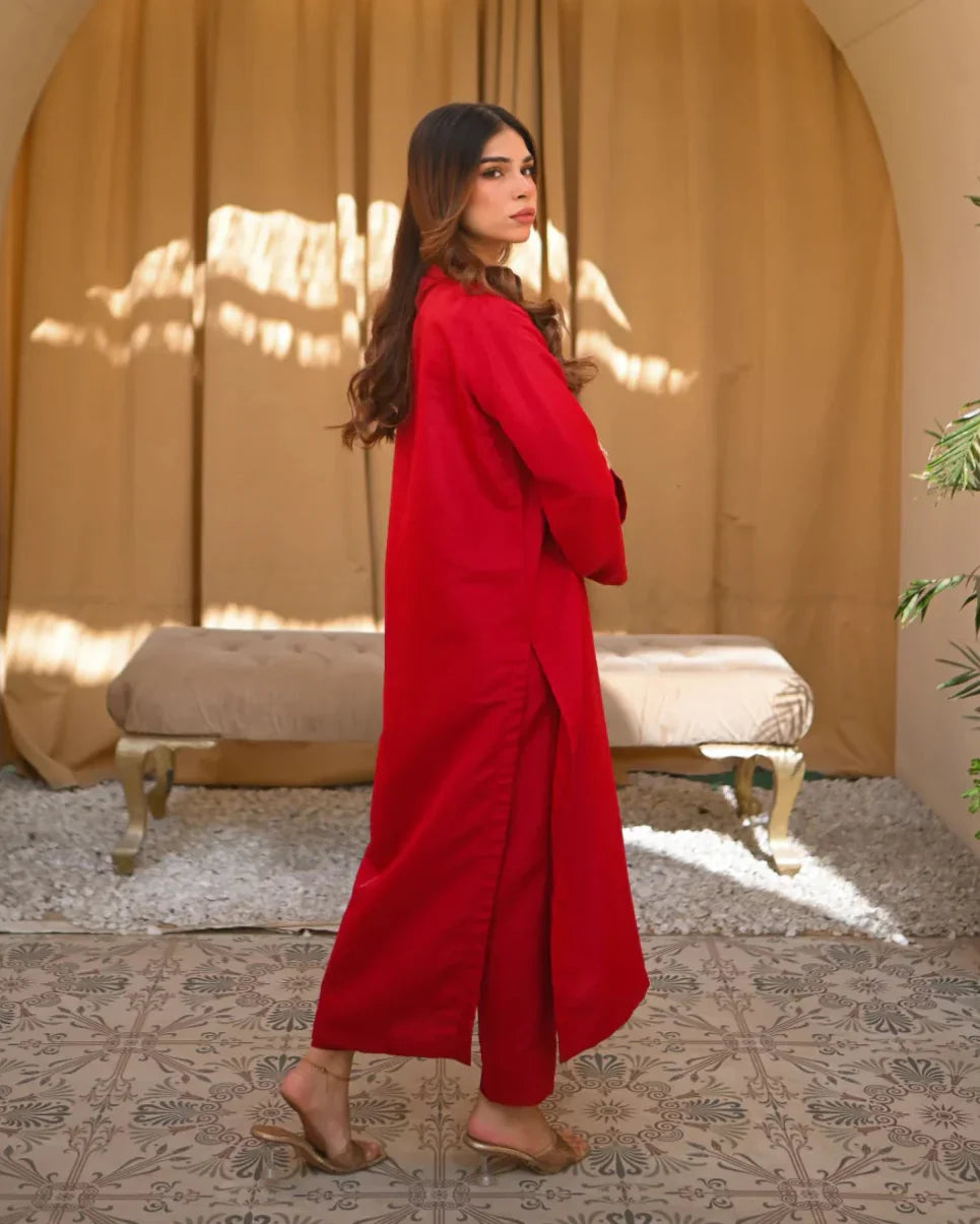 It's a two piece matching set includes a long shirt along with straight trouser.