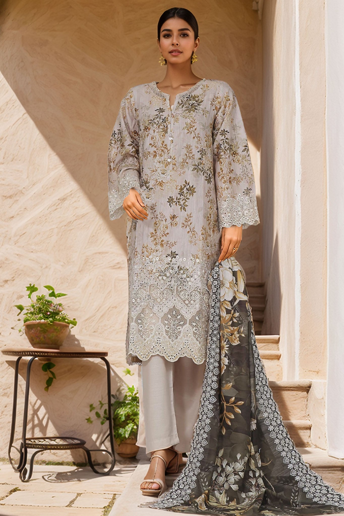 Stitched 3 Piece Laser Cutwork Chikankari Khaddar Suit