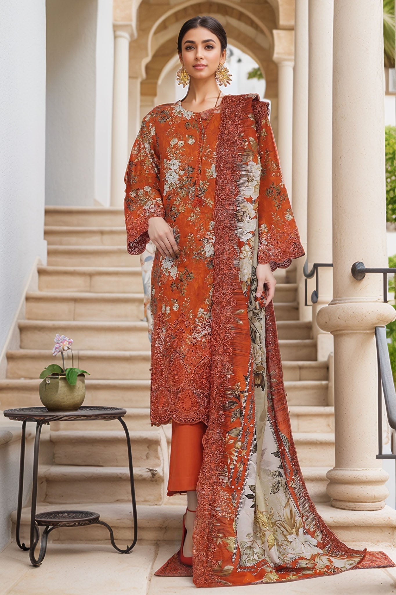 Sada Bahar Stitched 3 Piece Laser Cutwork Chikankari Vol-01 Collection'2024-D-19-Orange