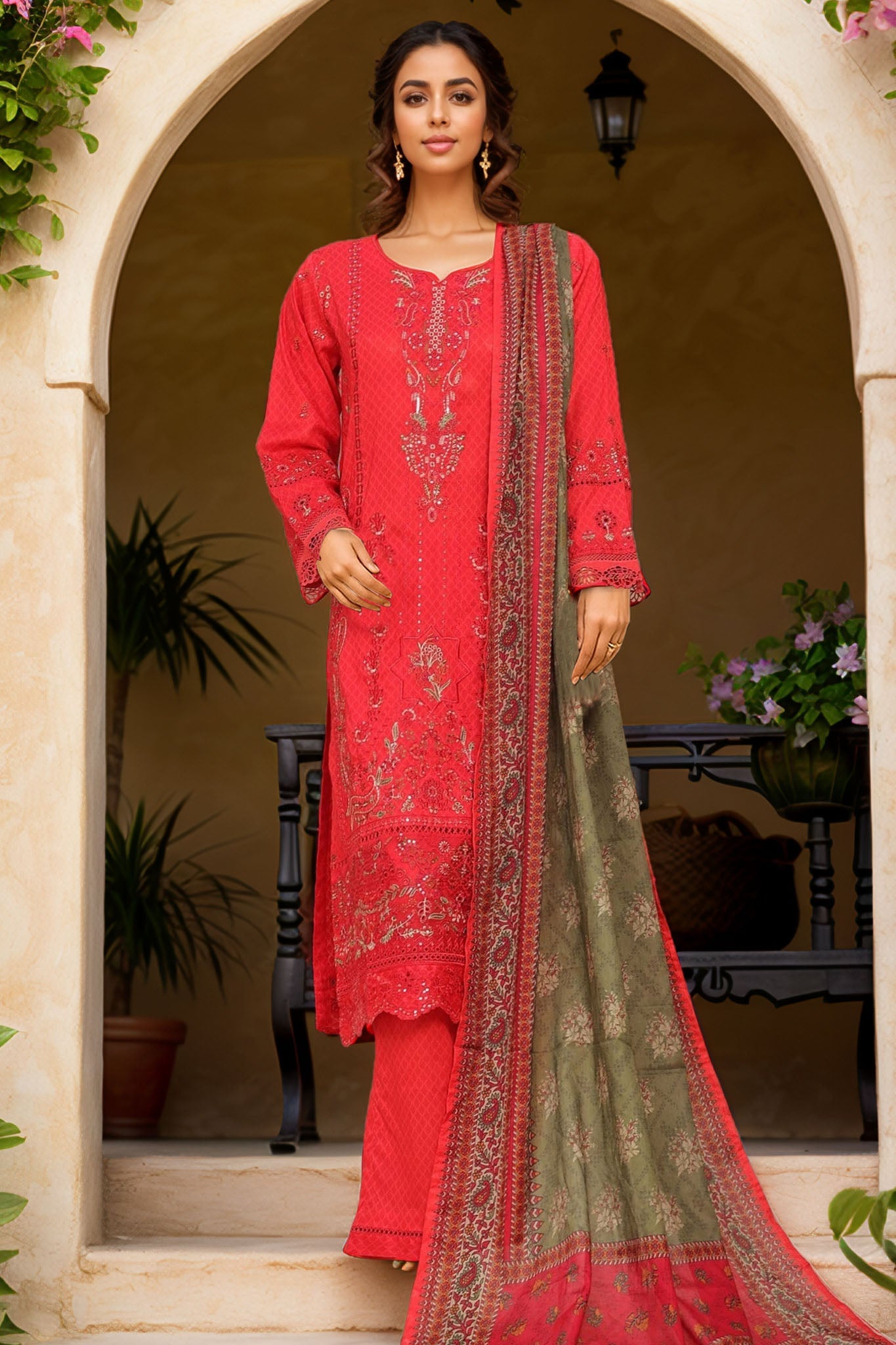 Sada Bahar Stitched 3 Piece Premium Emb & Printed Lawn Collection'2024-D-646-Red