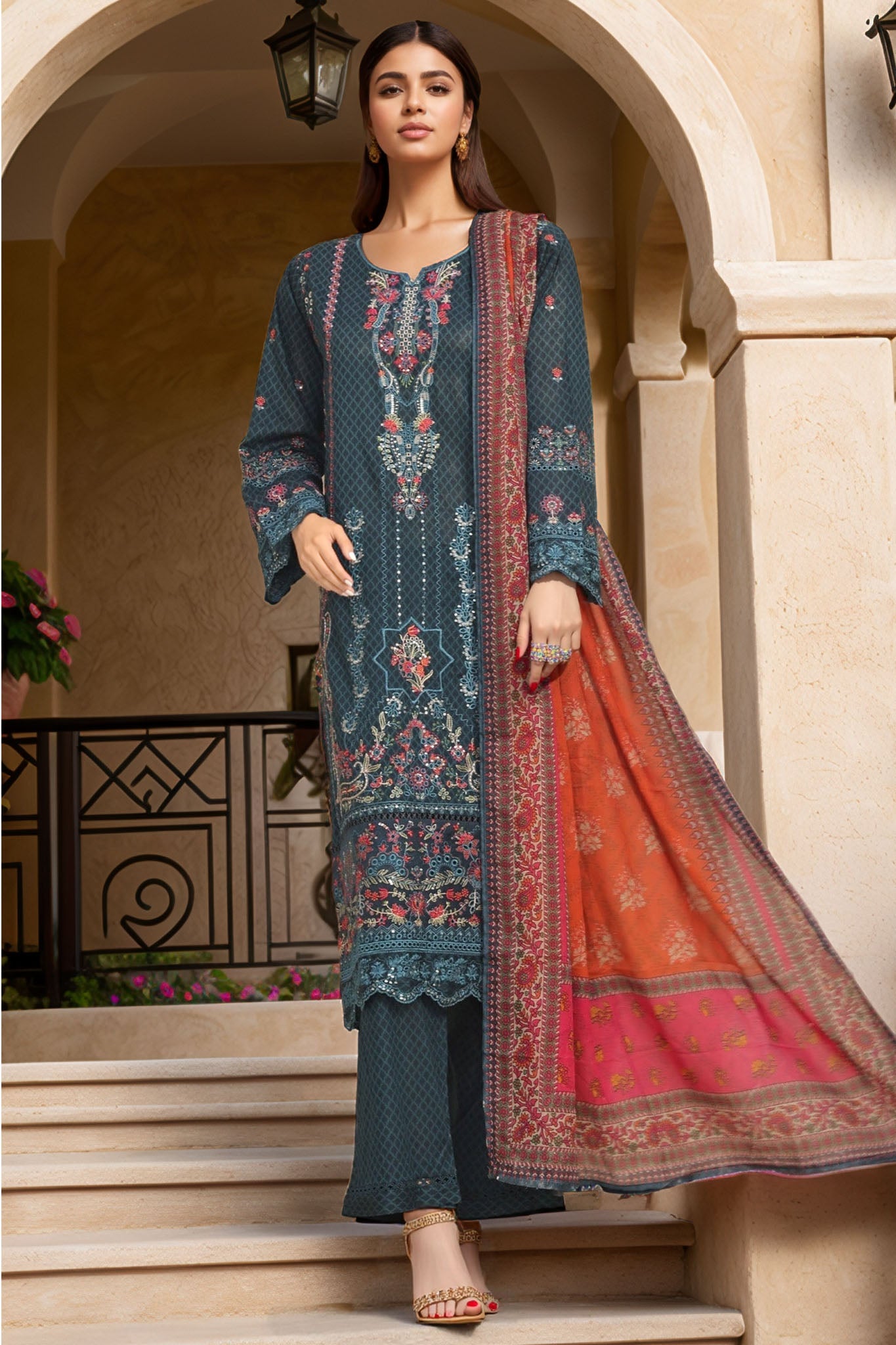 3 Piece Stitched Embroidered & Printed Lawn Suits