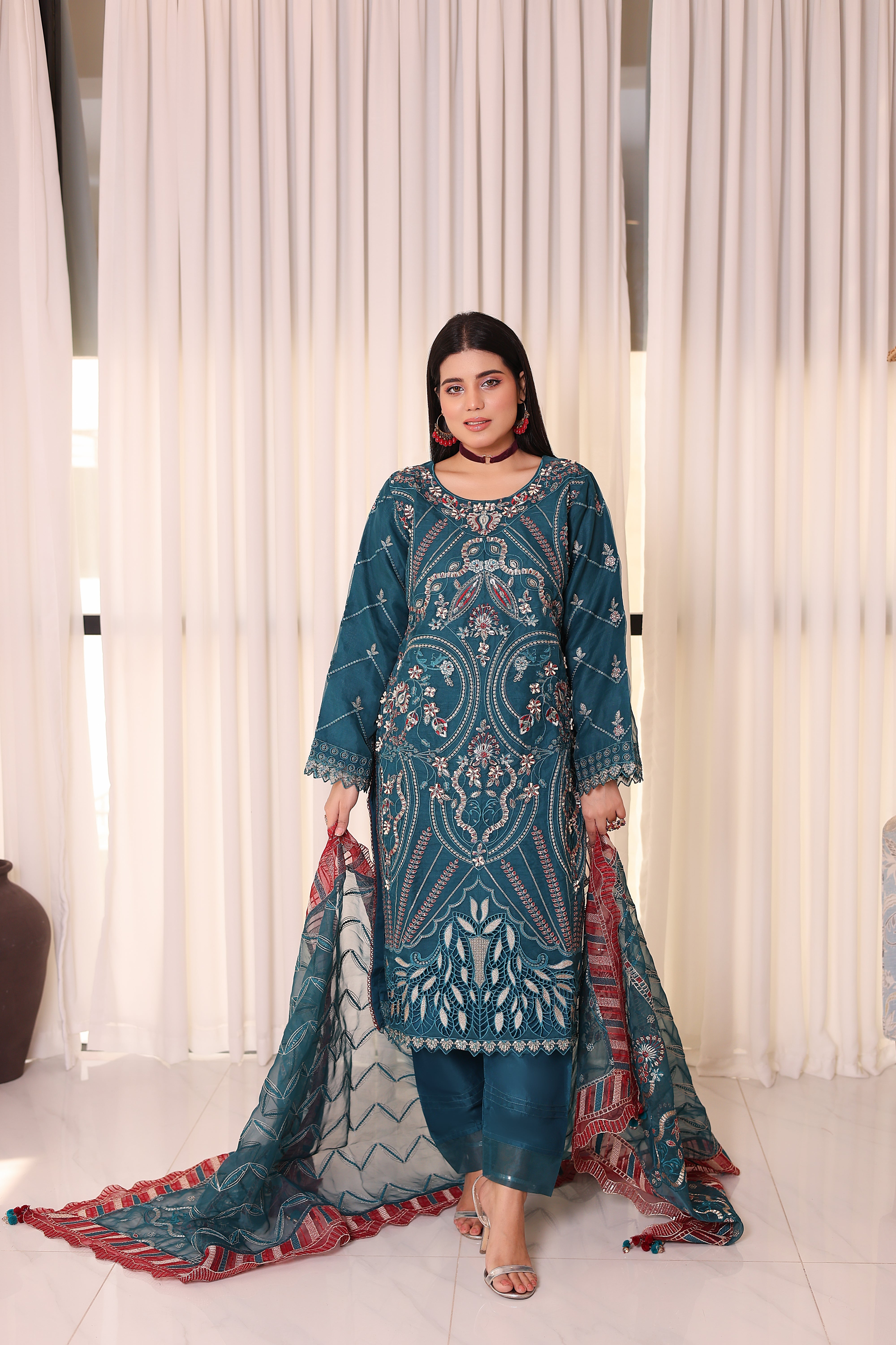 ð??? Heavy Embroidered & Embellished Stitched Organza Shirt â?? A luxurious statement piece featuring intricate embroidery and embellishments, exuding sophistication and charm.