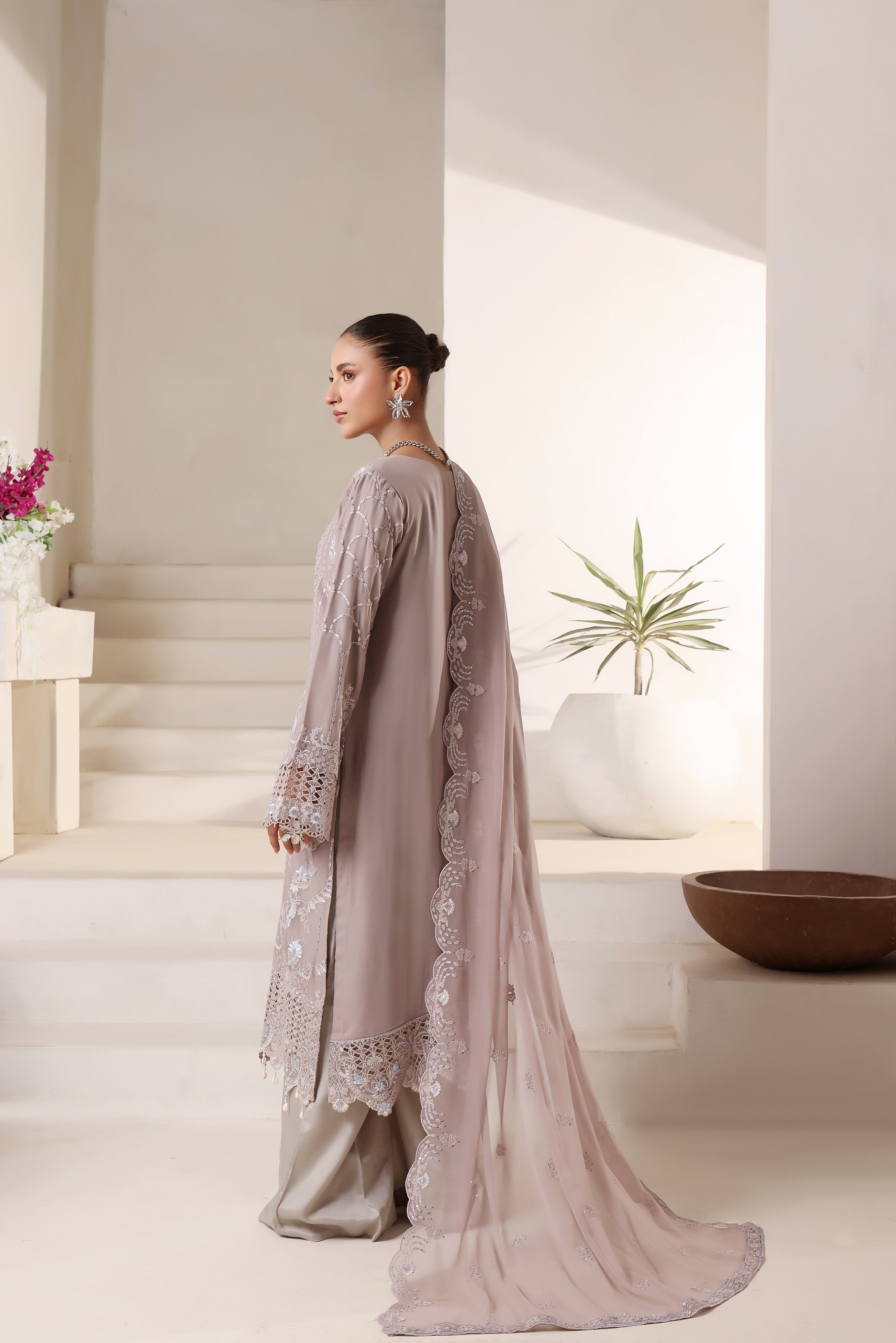 Dupatta: Luxury chiffon dupatta with embroidered accents for a graceful drape