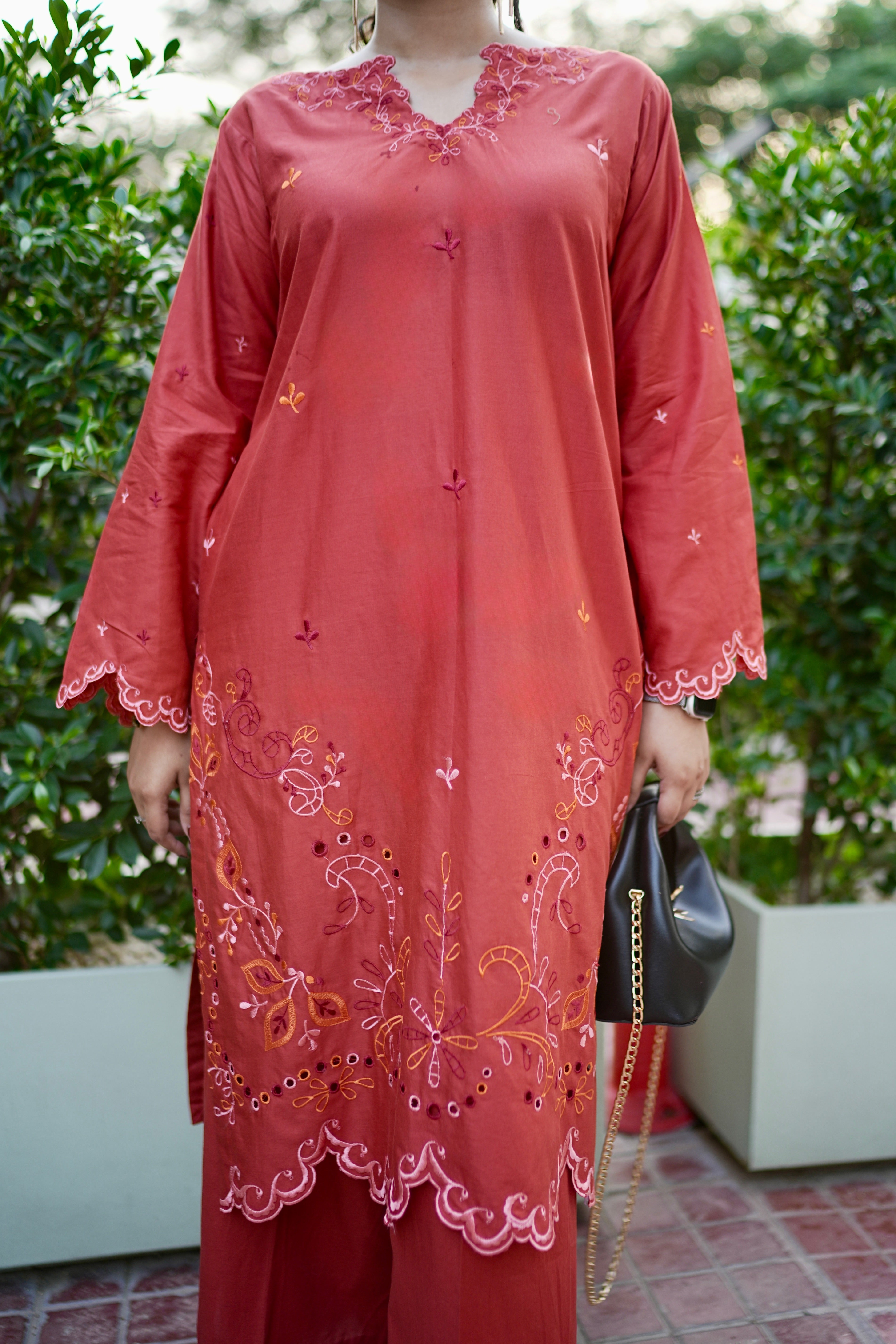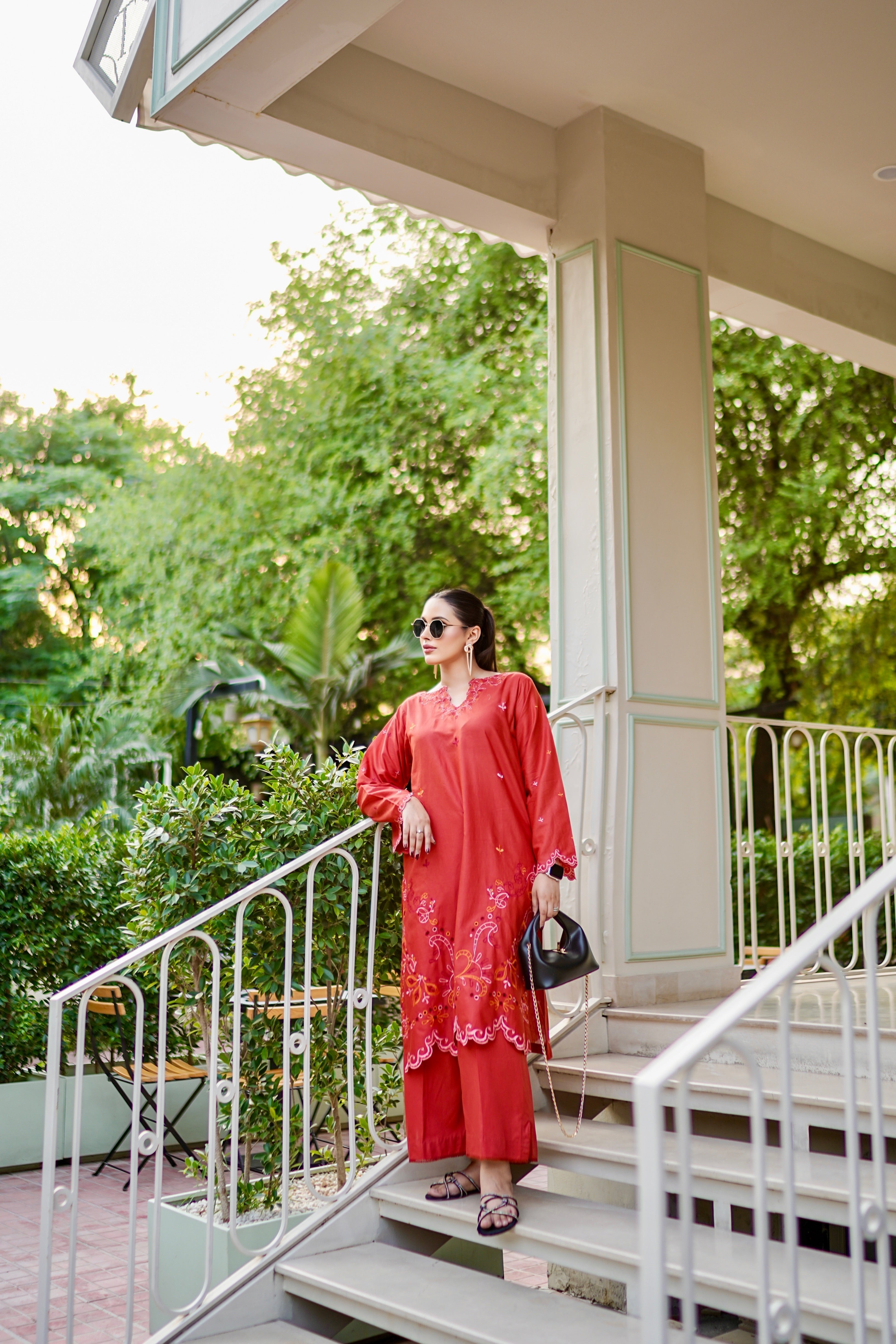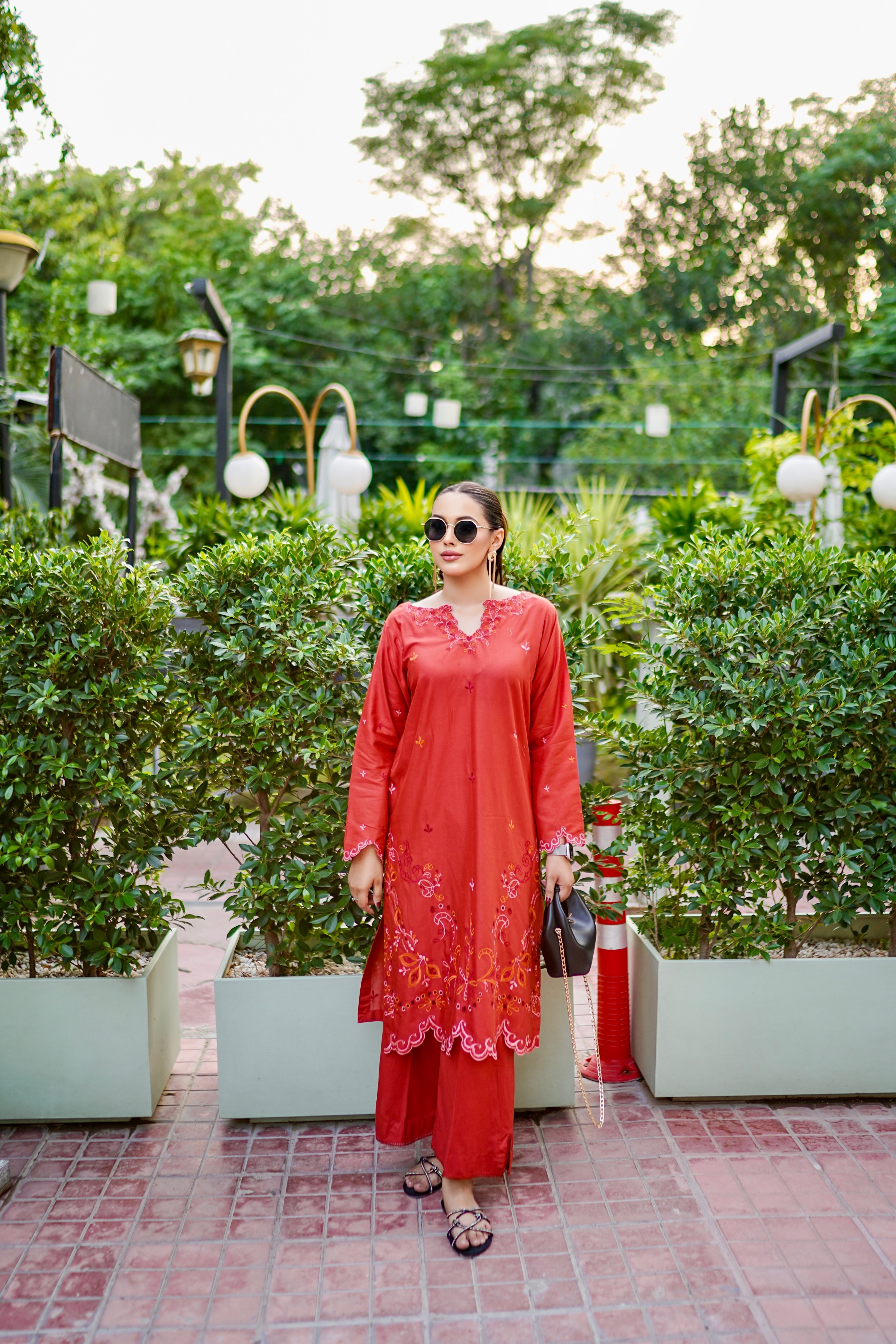 Turn heads in this bold crimson 2-piece, crafted from 100% premium cotton cambric. Soft, breathable, and durable ? it?s perfect for all seasons. Lightweight yet elegant, Scarlet Whisper is designed to make you shine effortlessly at every mehfil and gathering.