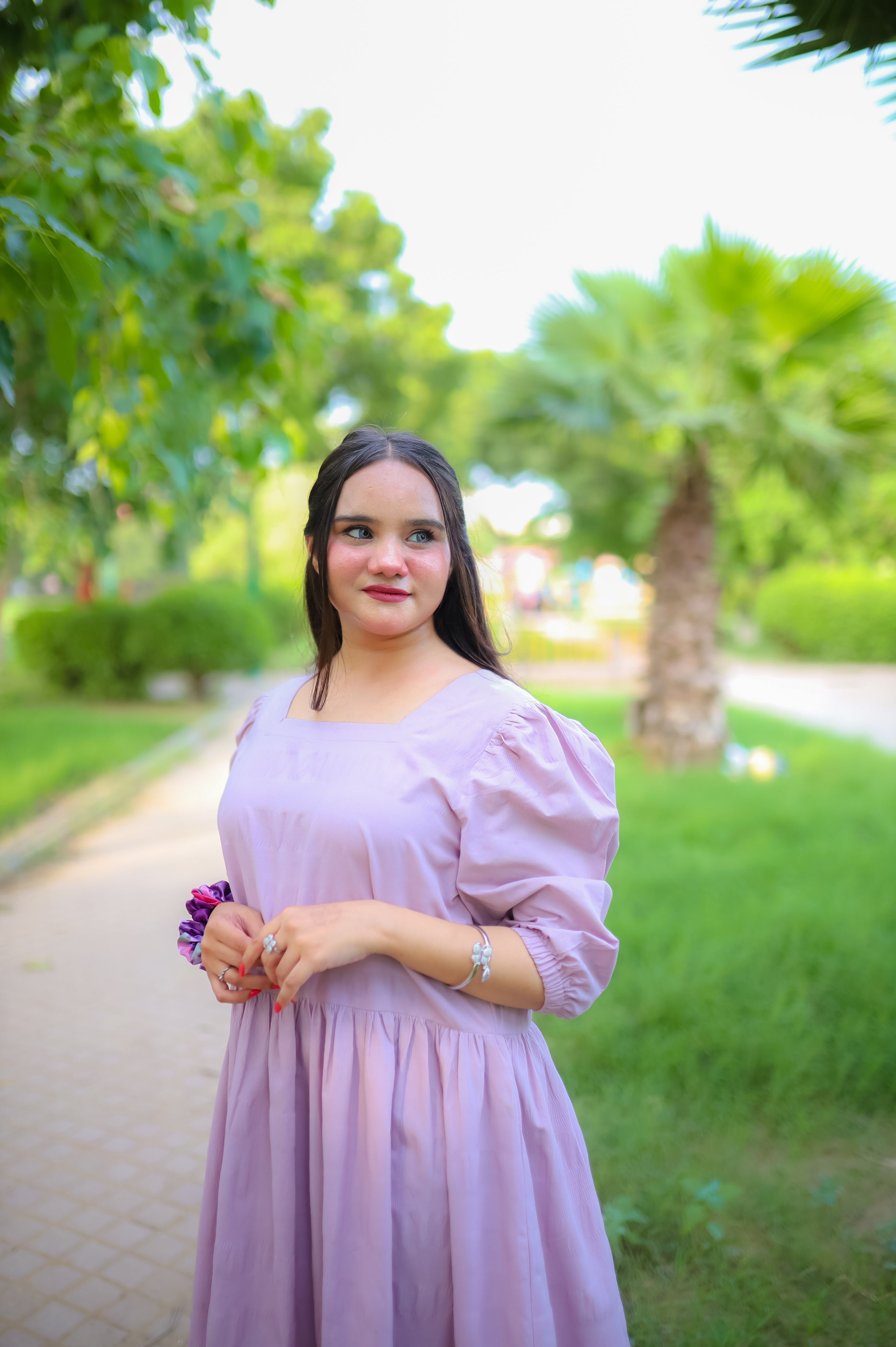 The square neckline and gently puffed sleeves add a touch of femininity, while the flowy A-line silhouette drapes beautifully to flatter every body shape. Its airy design makes it ideal for casual outings, park strolls, brunches, or even cozy get-togethers. Pair it with sandals for a relaxed daytime look, or dress it up with heels and accessories for a more refined appearance.