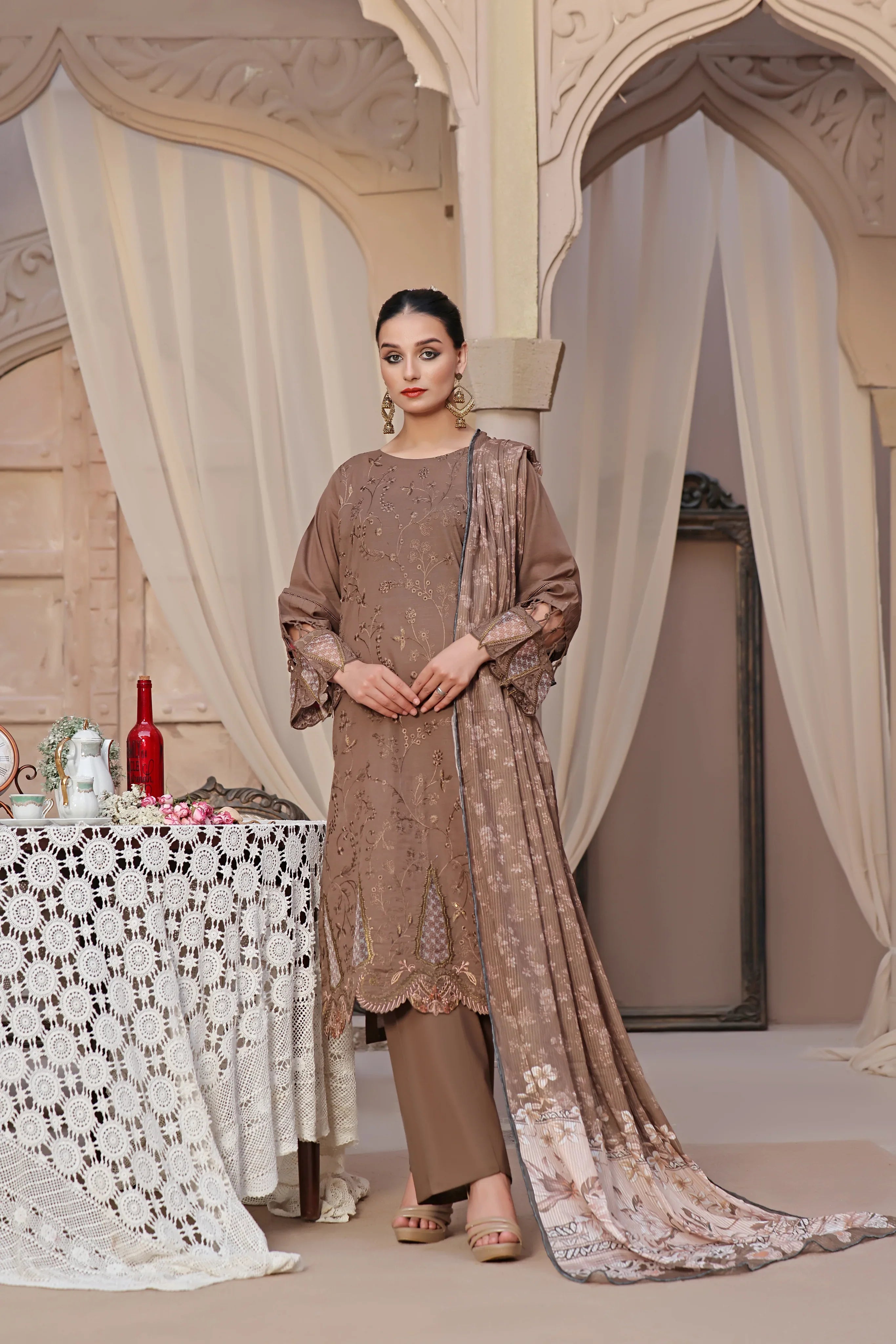 Semi Stitched Luxury Chikankari & Laserkari Embroidered Lawn ShirtDigital Printed Lawn Diamond Slub DupattaDyed Cambric Trouser