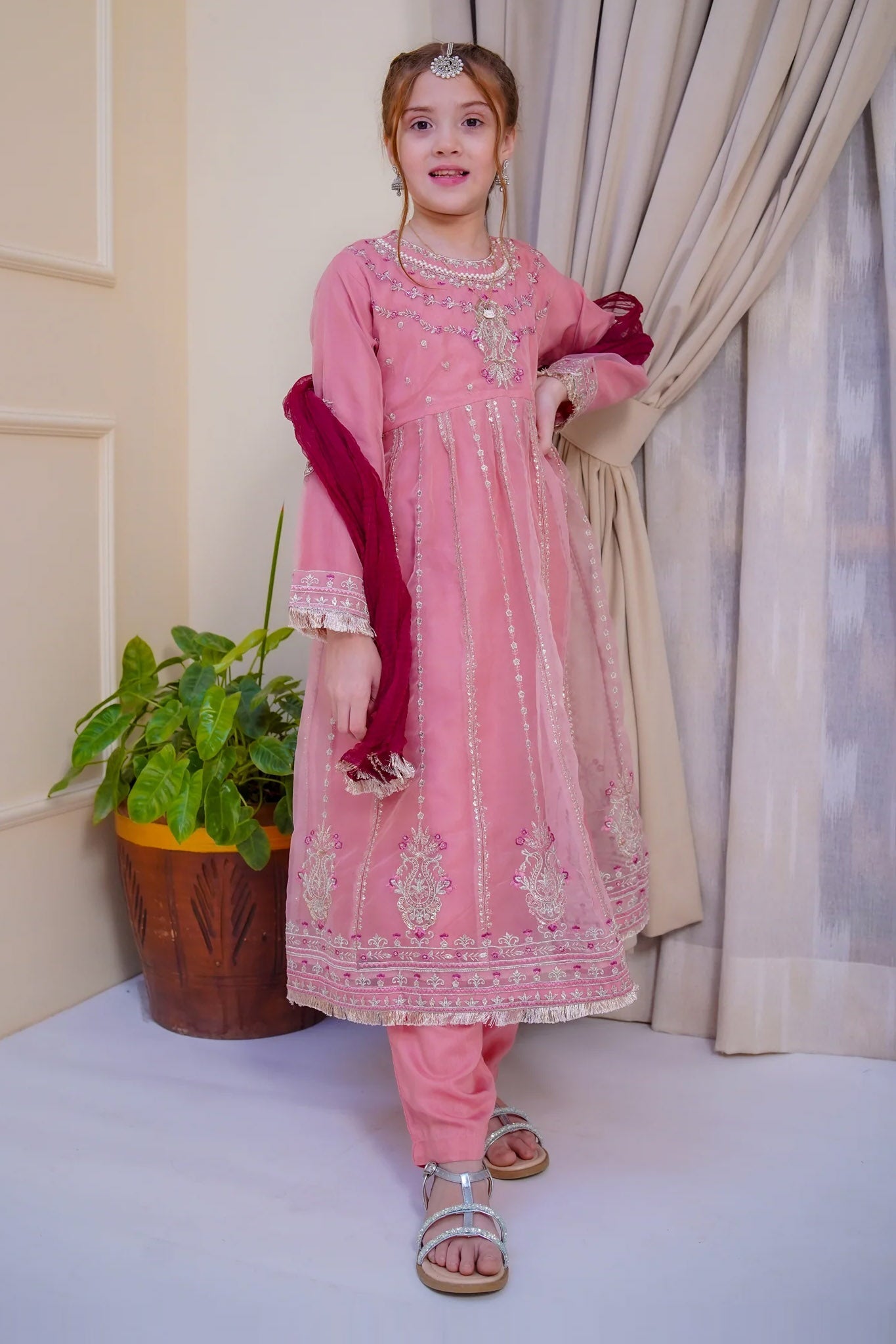 Embroidered and embellished Organza Pishwas with Silk Inner