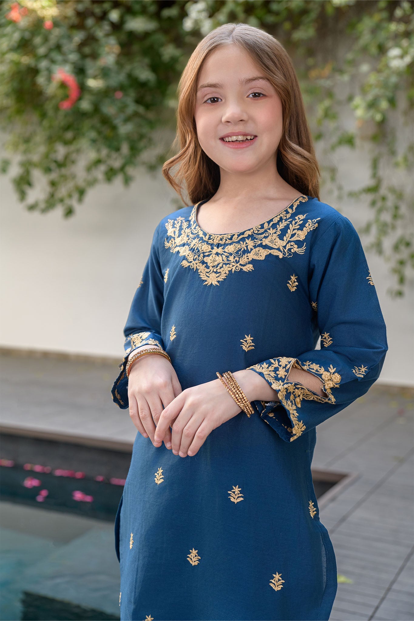 2 piece navy blue kurta set for girls - festive/party wear for summer/ Embroidered
