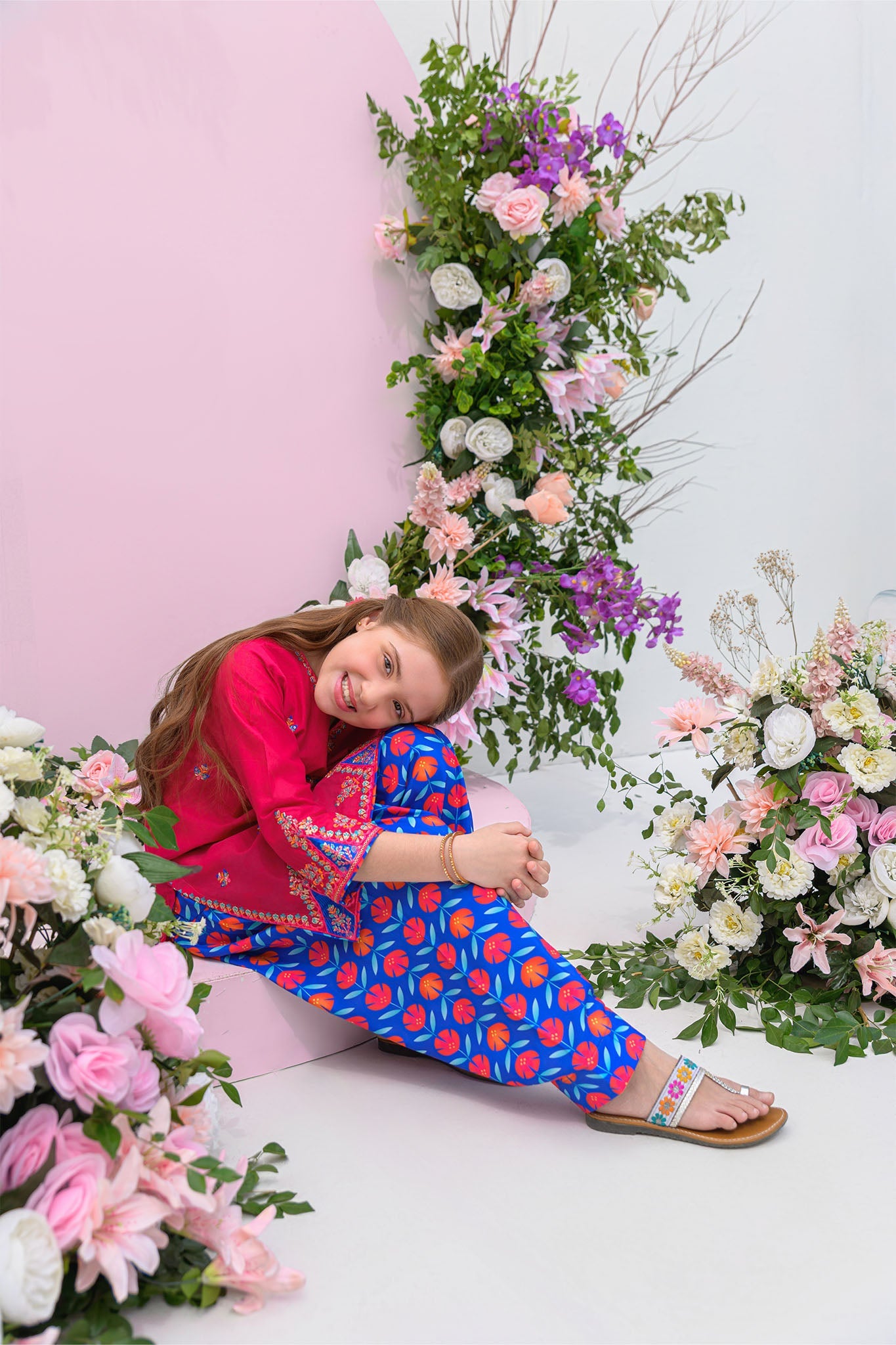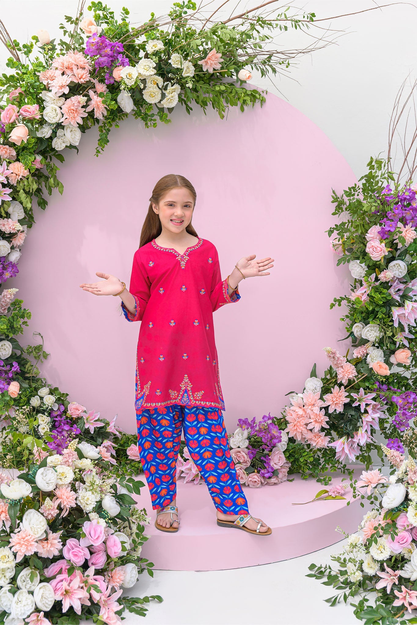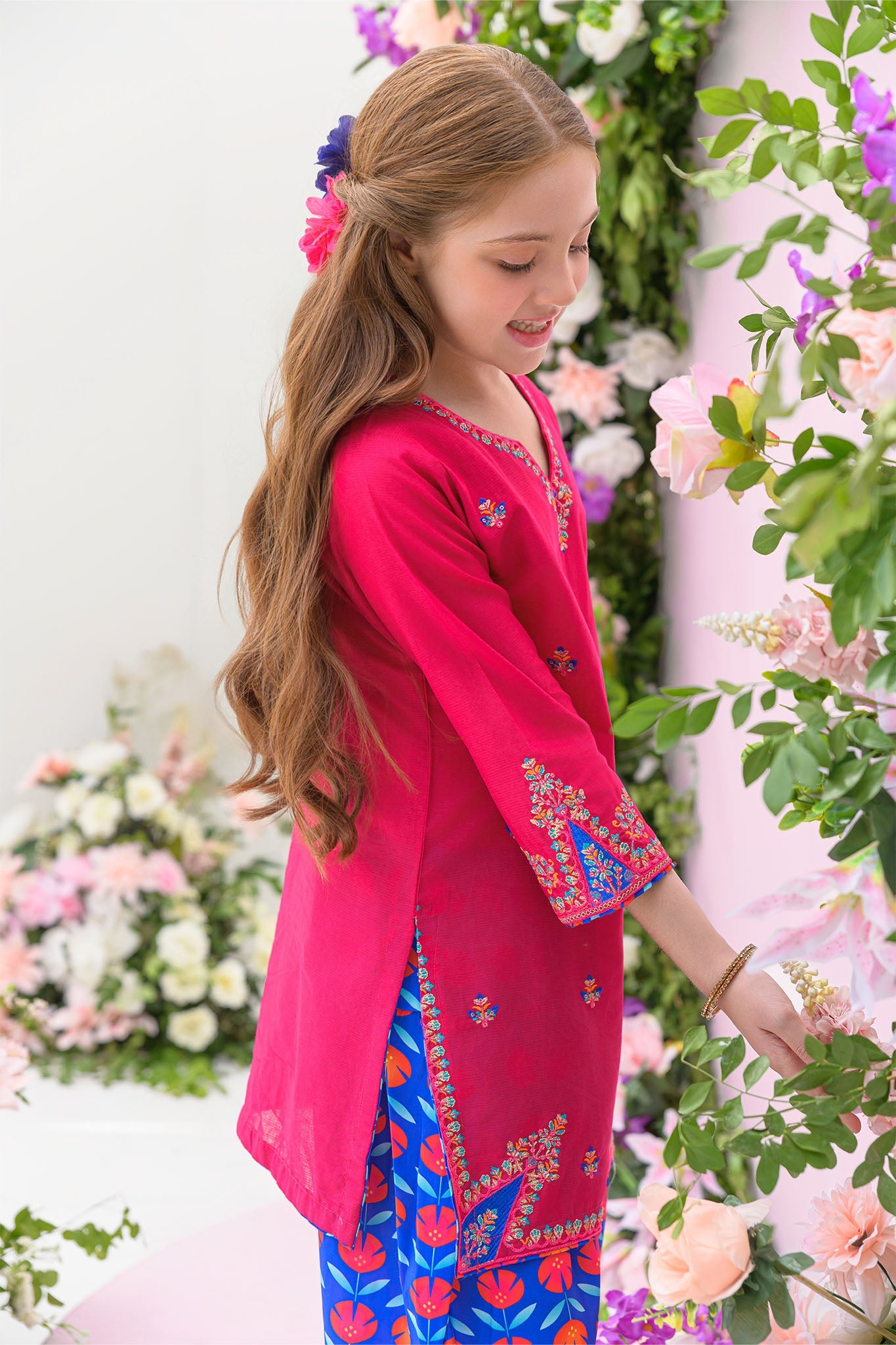 2 piece Dark pink kurta set for girls - festive/party wear for summer/ Embroidered