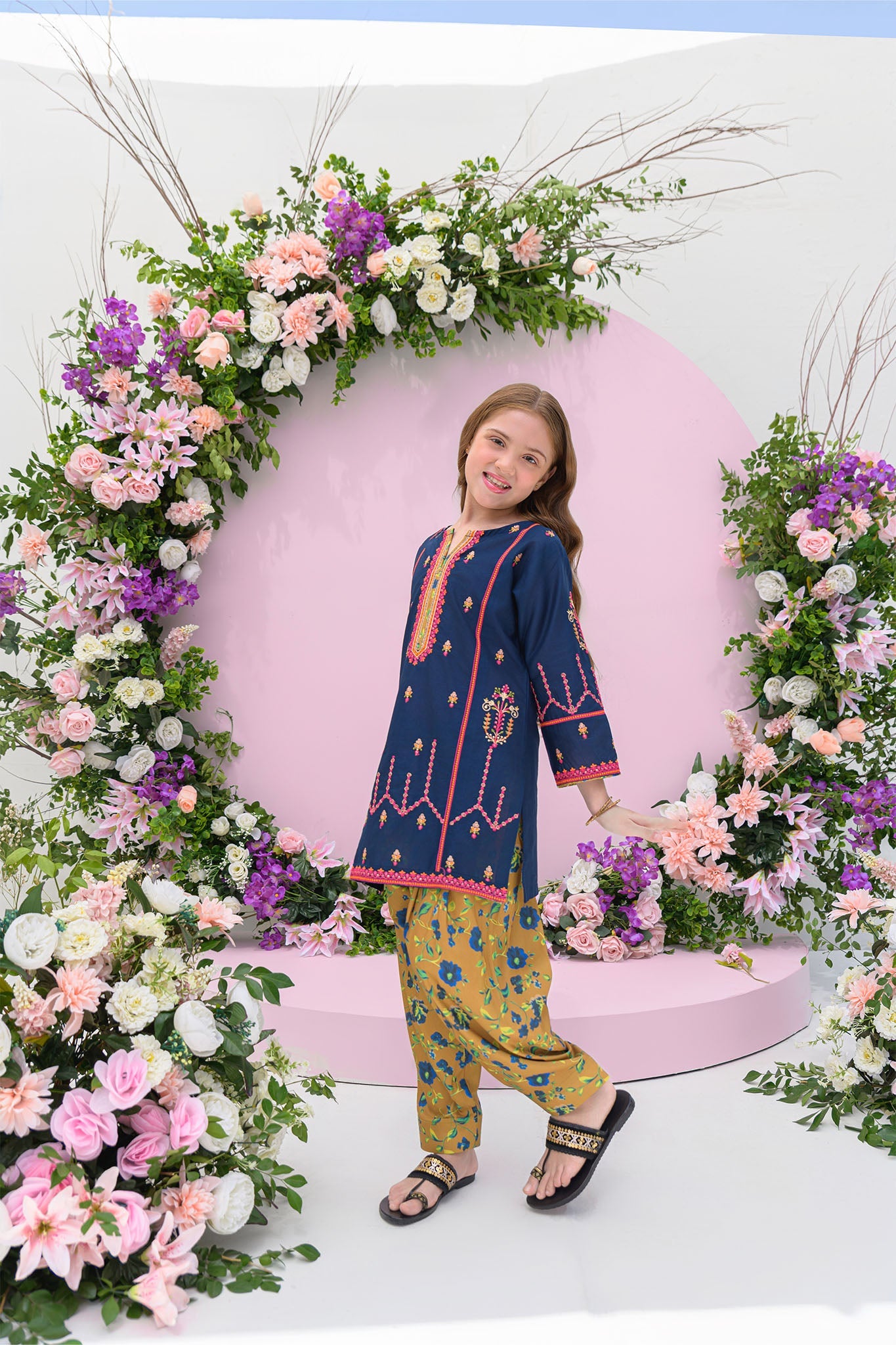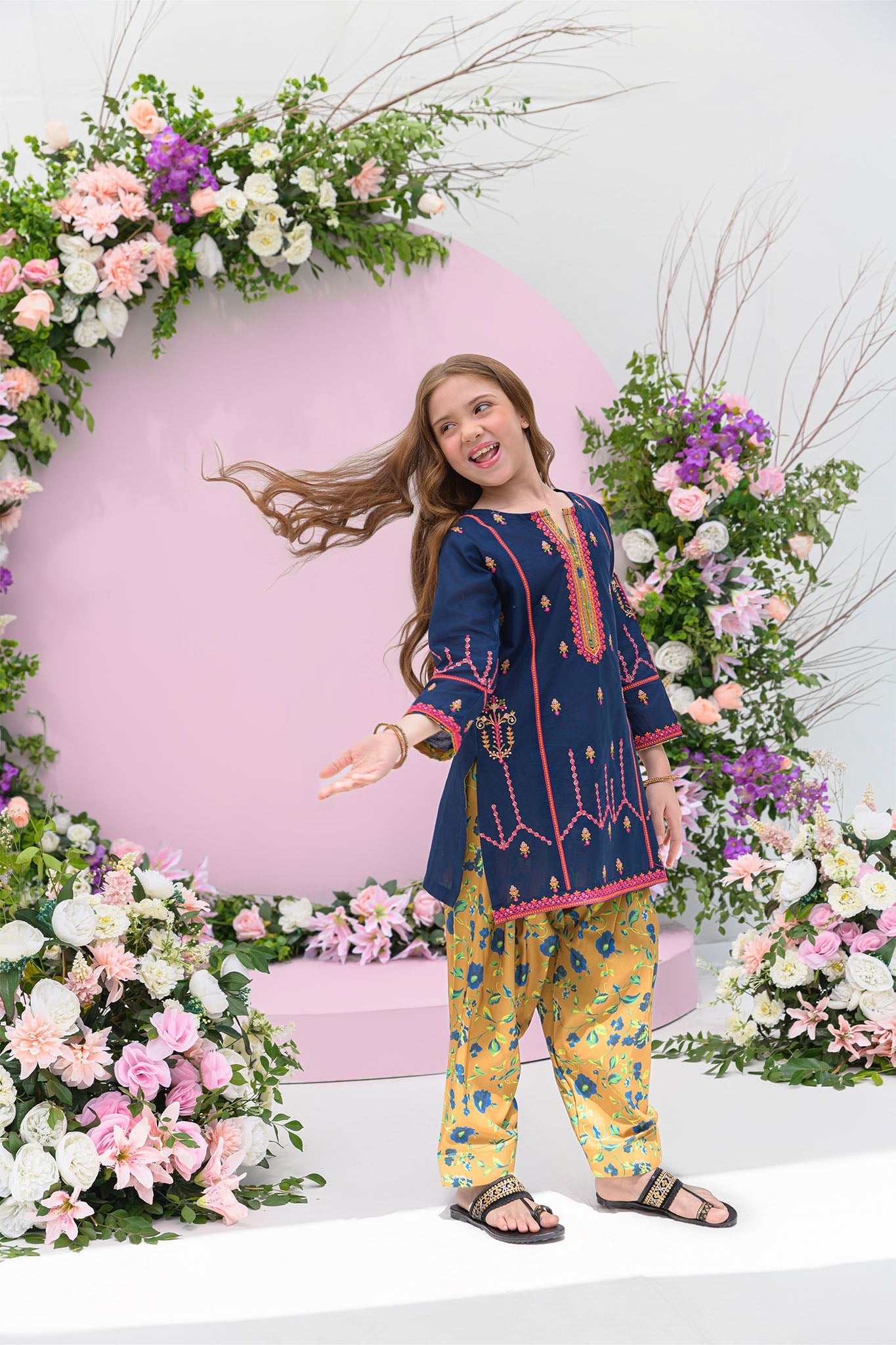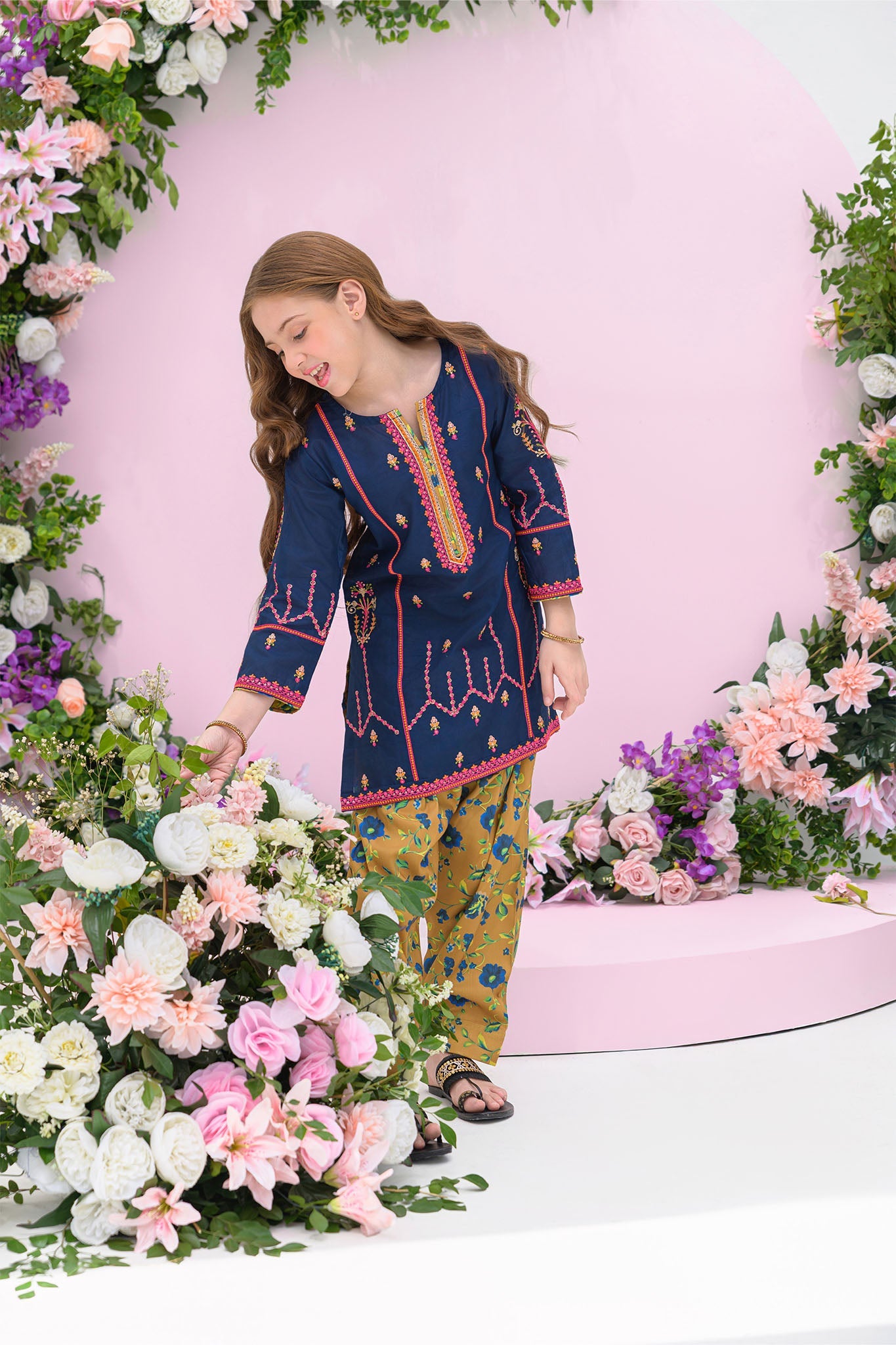 2 piece blue kurta set for girls - festive/party wear for summer/ Embroidered