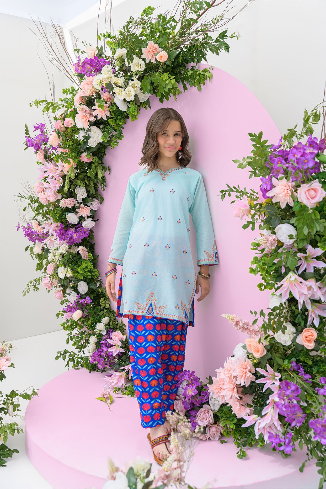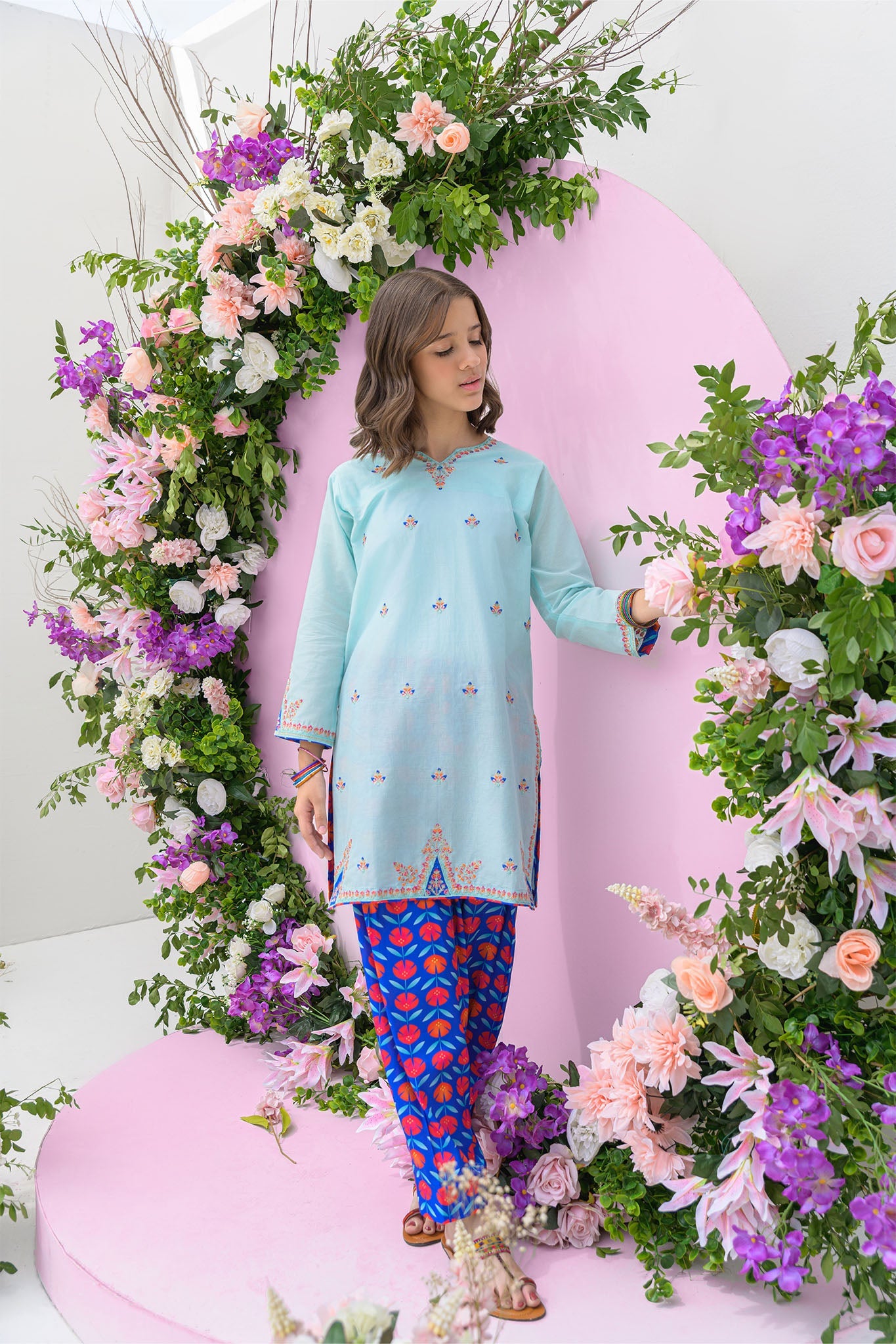 2 piece Sky blue kurta set for girls - festive/party wear for summer/ Embroidered