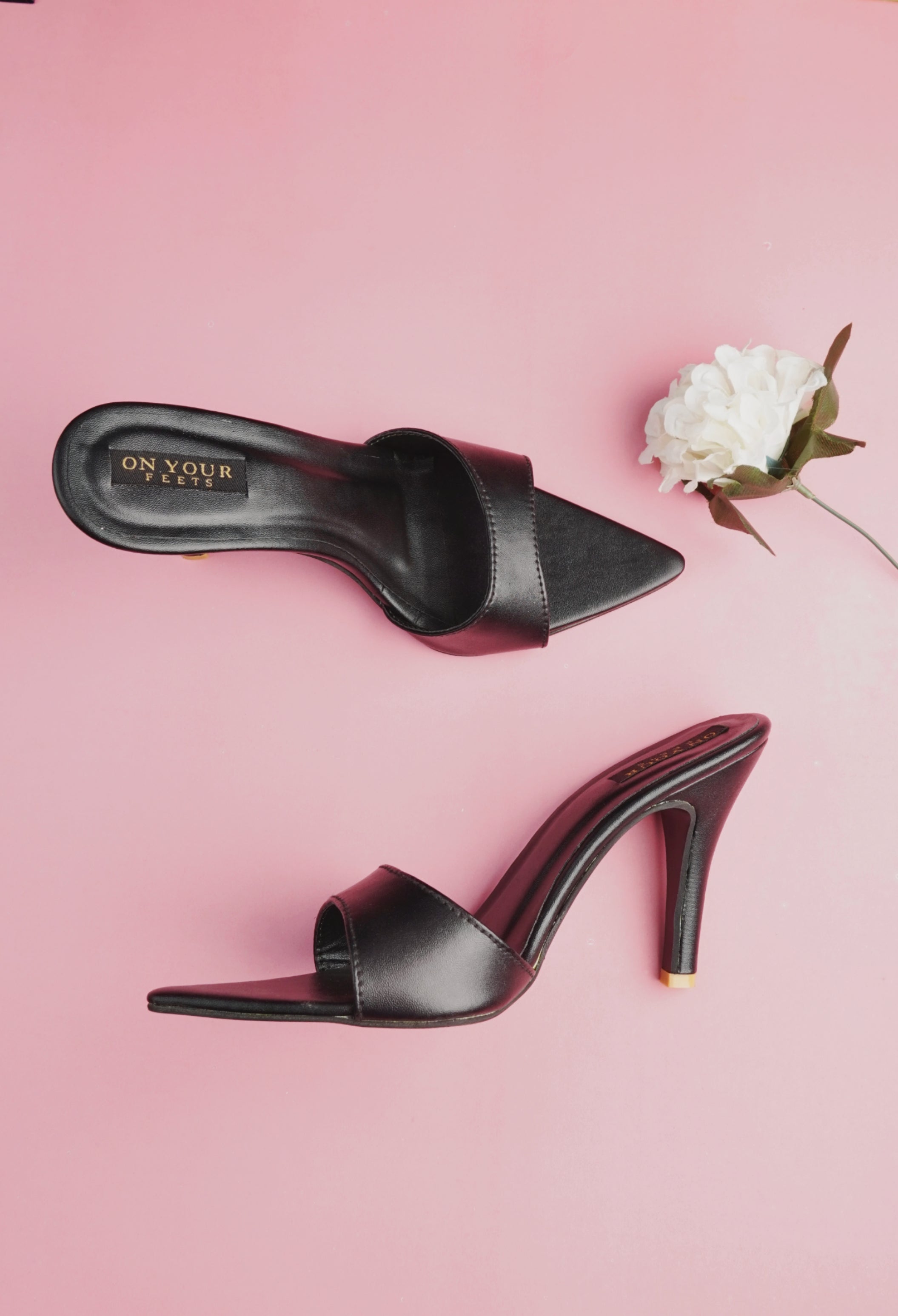 Crafted from premium faux leather with a sleek pointed toe and cushioned insole, these heels combine modern confidence with lasting comfort.