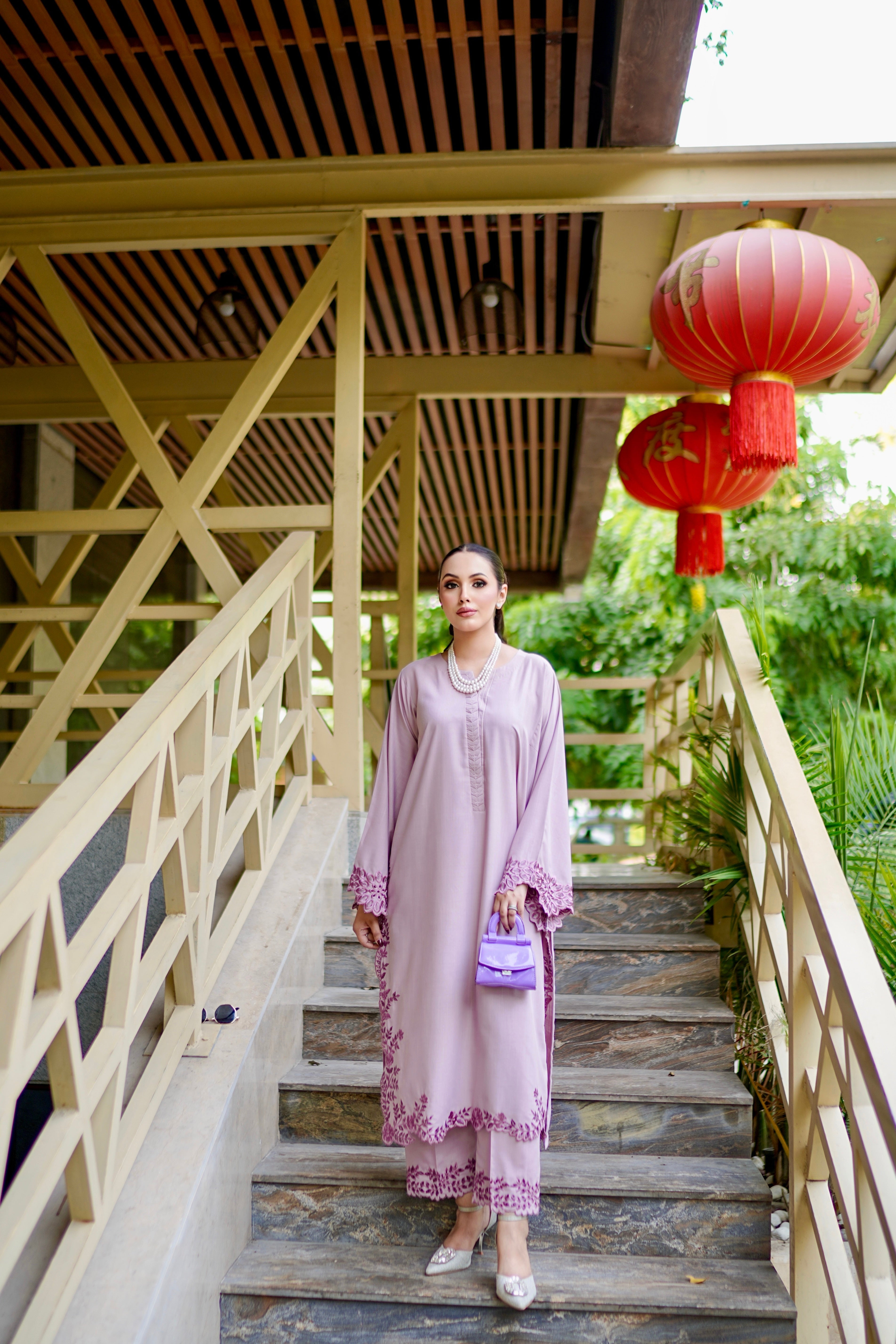 Embrace effortless grace in this dreamy lilac 2-piece, tailored from premium blended fabric. Soft to touch, crease-resistant, and all-season friendly, Soft Twilight is a refined yet easy-to-style outfit ? perfect for serene gatherings or casual chic moments.