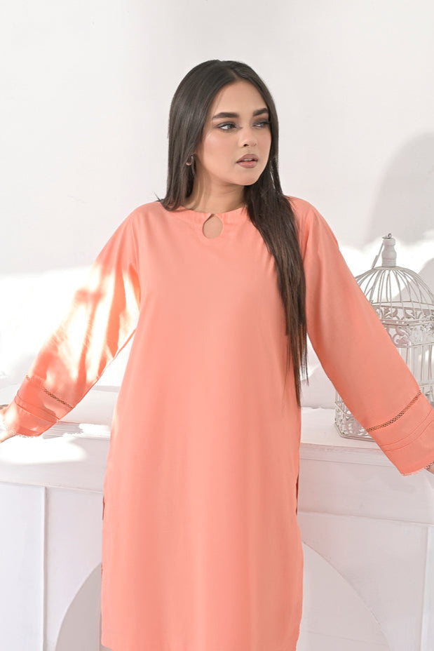 Brighten up your wardrobe with this charming peach two-piece outfit, designed for those who love a mix of simplicity and elegance. Perfect for casual outings, festive occasions, or workwear, this outfit guarantees comfort with style.