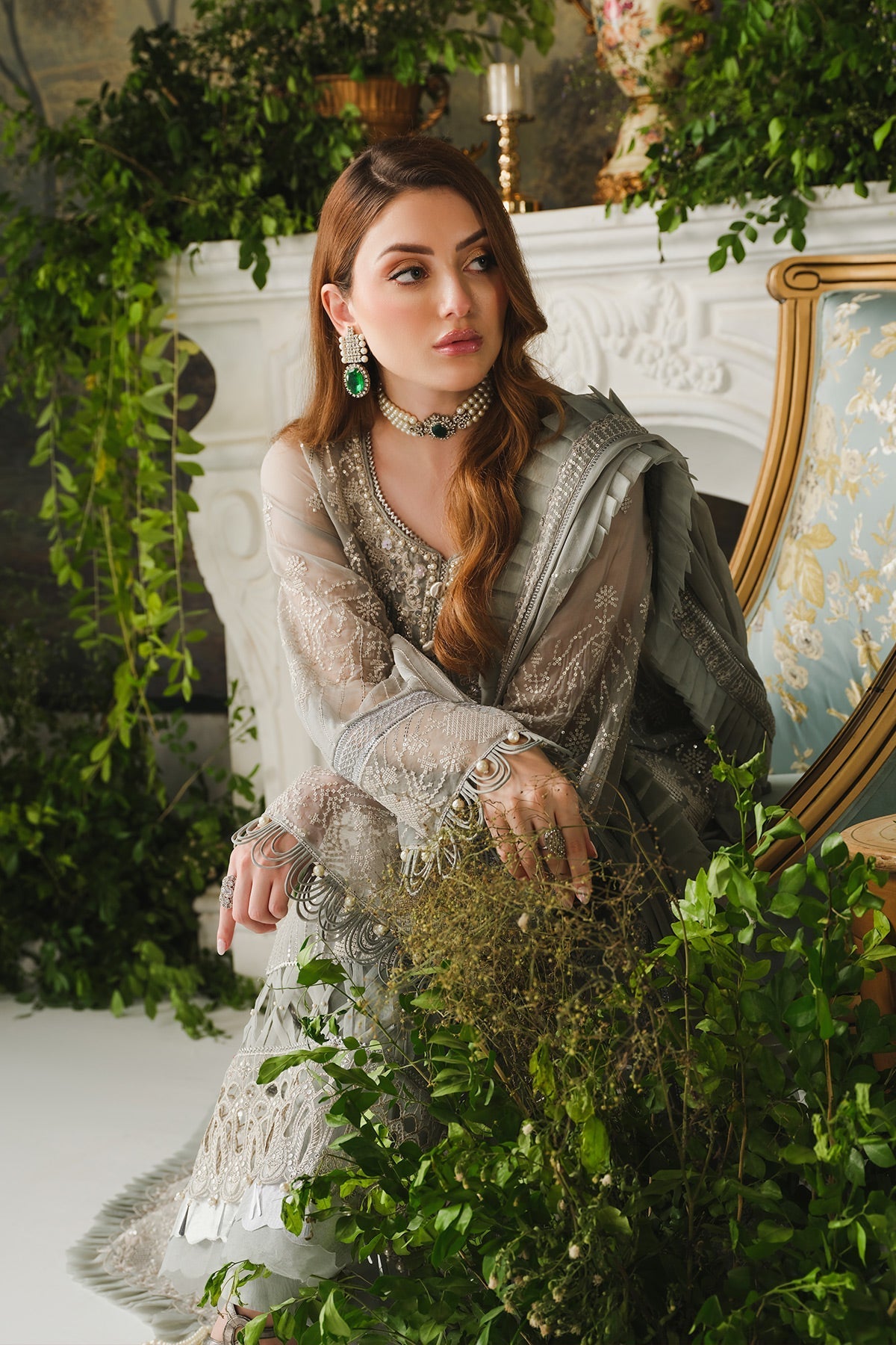 Embroidered sleeves border on organza