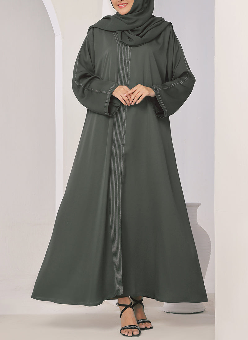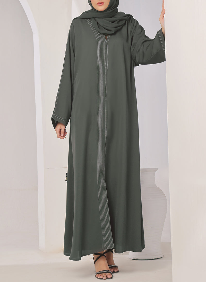 Note: If customer changes the Abaya color rather than choosing the same color given in the picture, Embroidery and stones color will be change of same or contras color depends on the design of the Abaya. Any printed fabric placed on the Abaya would be change at the time of order if not available in Stock.