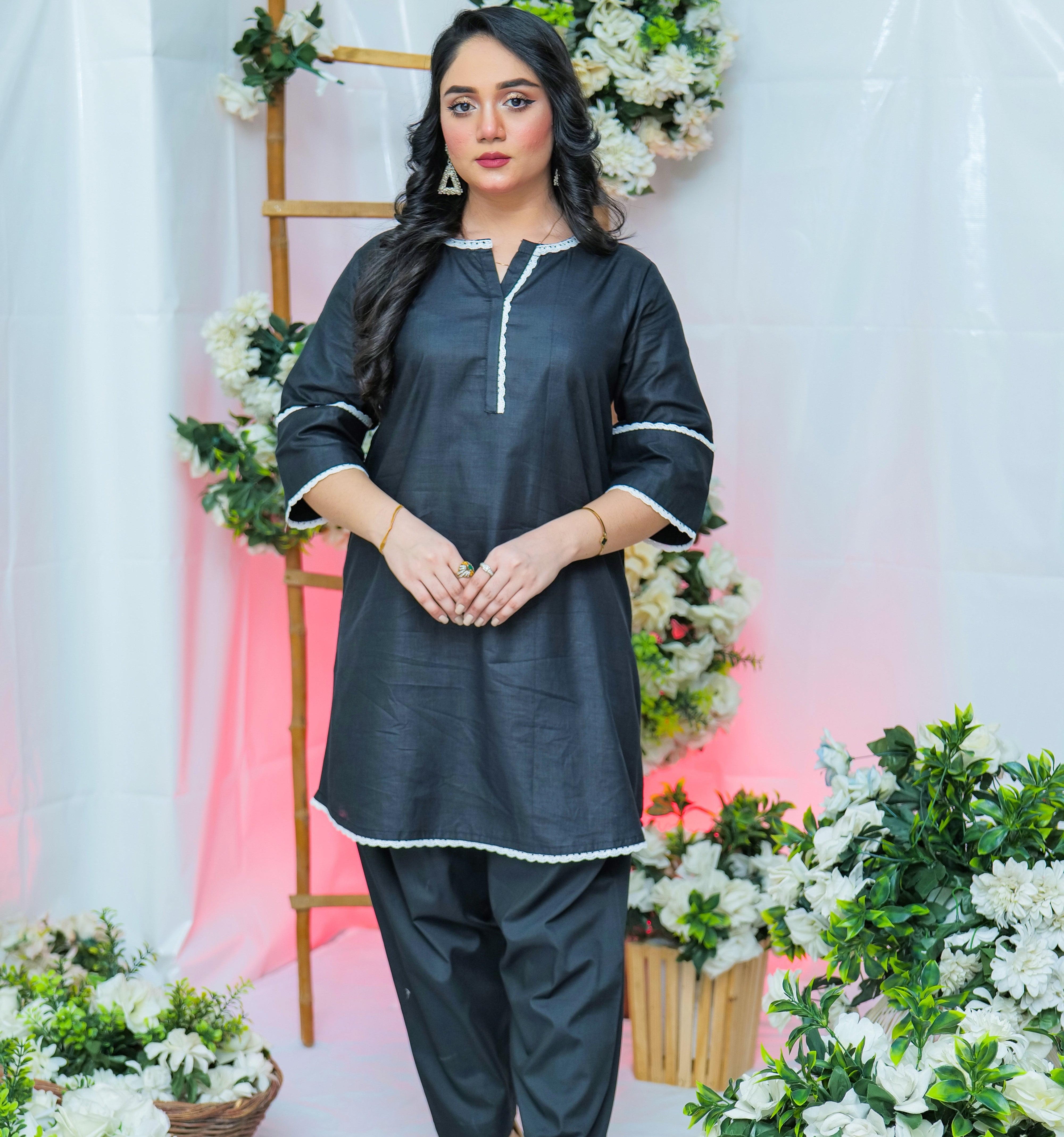 Sleek, graceful, and timeless the Noir 2-Piece Set is your everyday essential reimagined with a modern Eastern touch. Designed in deep black and adorned with delicate detailing, this ensemble offers understated elegance for any occasion.