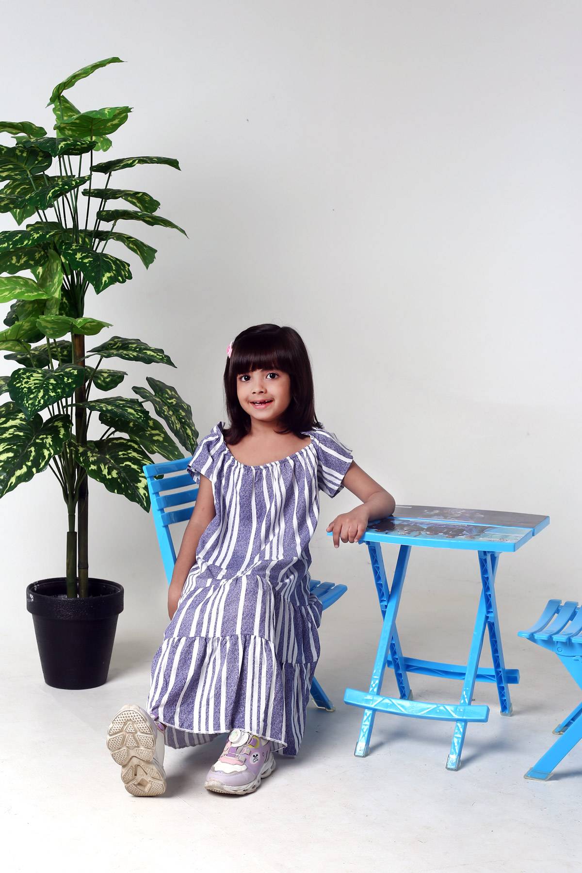 Lightweight and breathable viscose fabric dress with a stylish striped pattern.