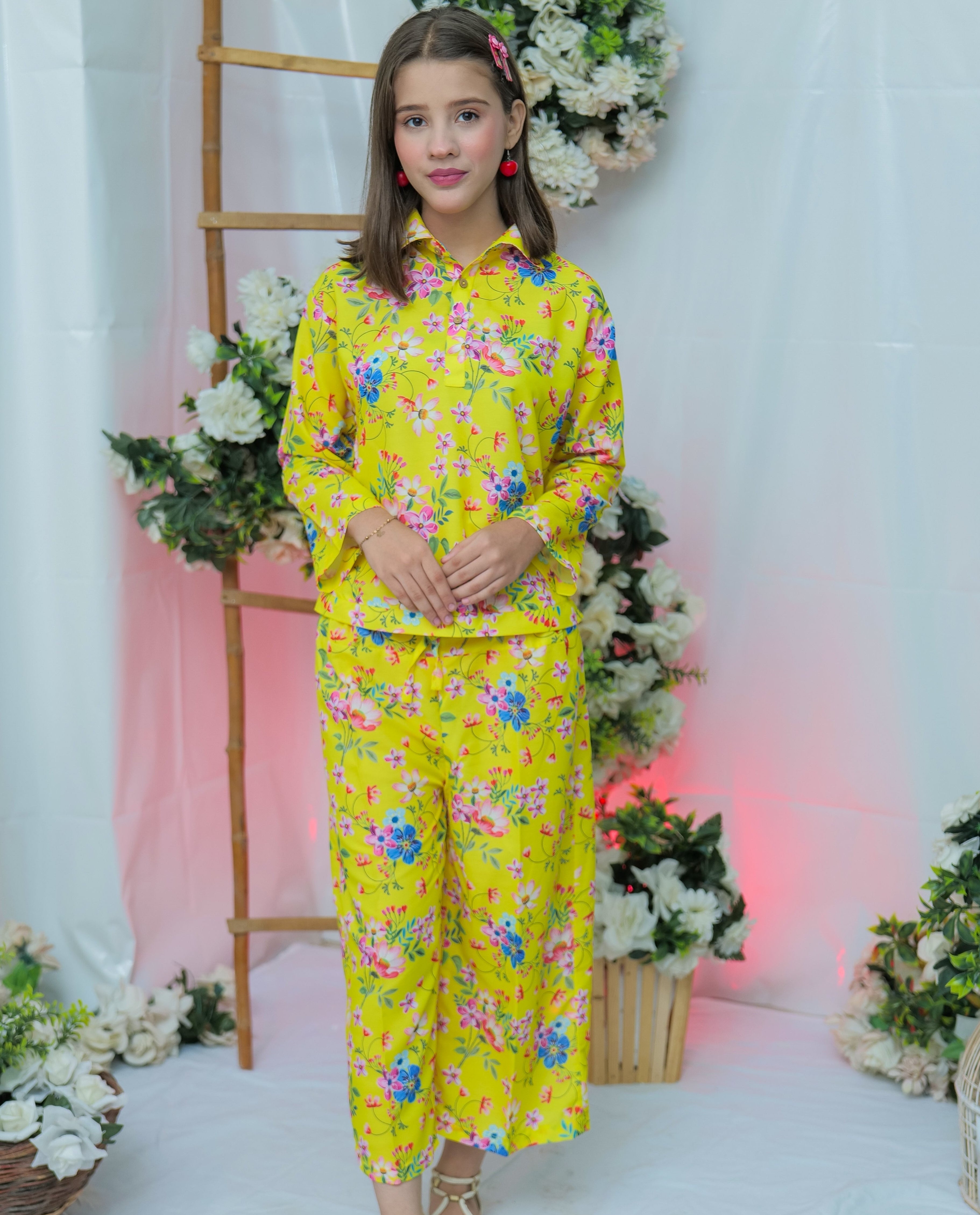 Brighten up your wardrobe with the Sunshine Blossom Jumpsuit a radiant piece that captures the spirit of summer in every stitch. Designed in a lively yellow tone and crafted from breathable Swiss Lawn fabric, this jumpsuit is your go-to for sunny days and carefree vibes.