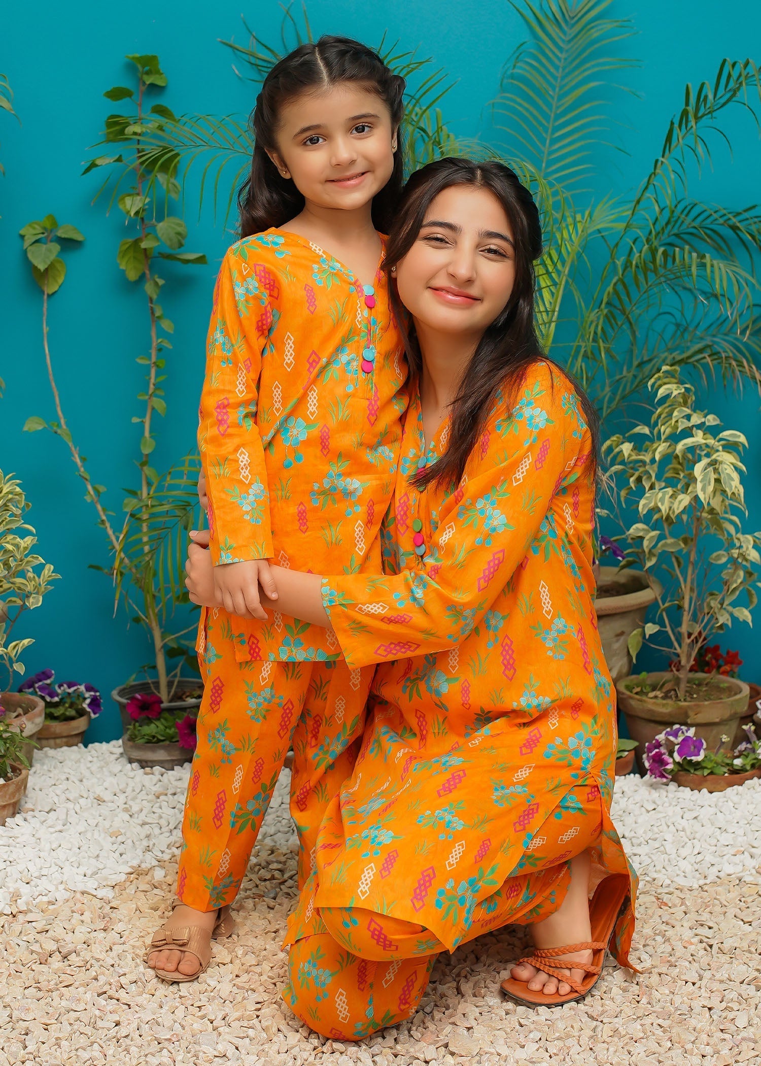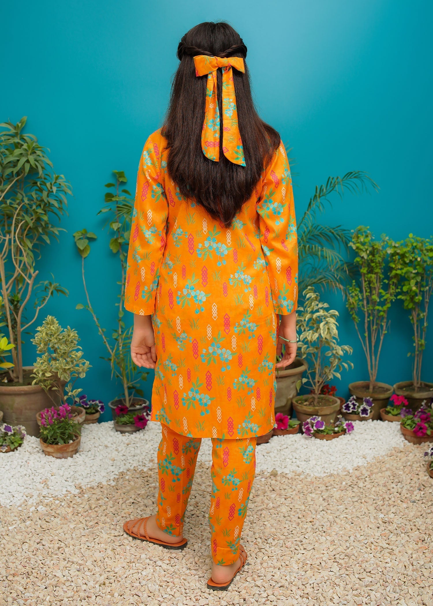 Add a burst of color to your wardrobe with this vibrant orange 2-piece stitched lawn outfit.?