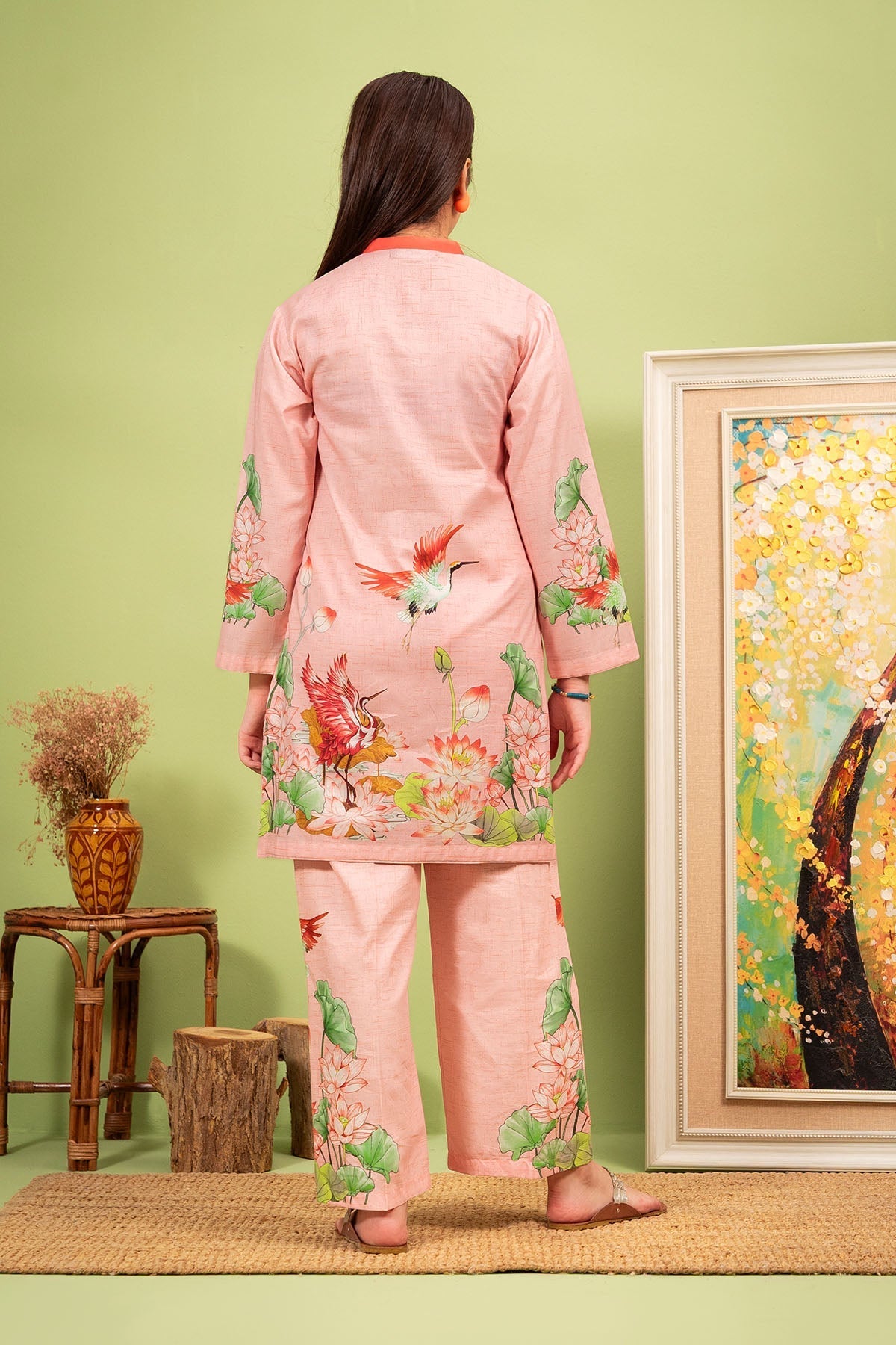 Top: Pink Digital Printed Lawn KurtaBottom: Pink Digital Printed Lawn Trouser