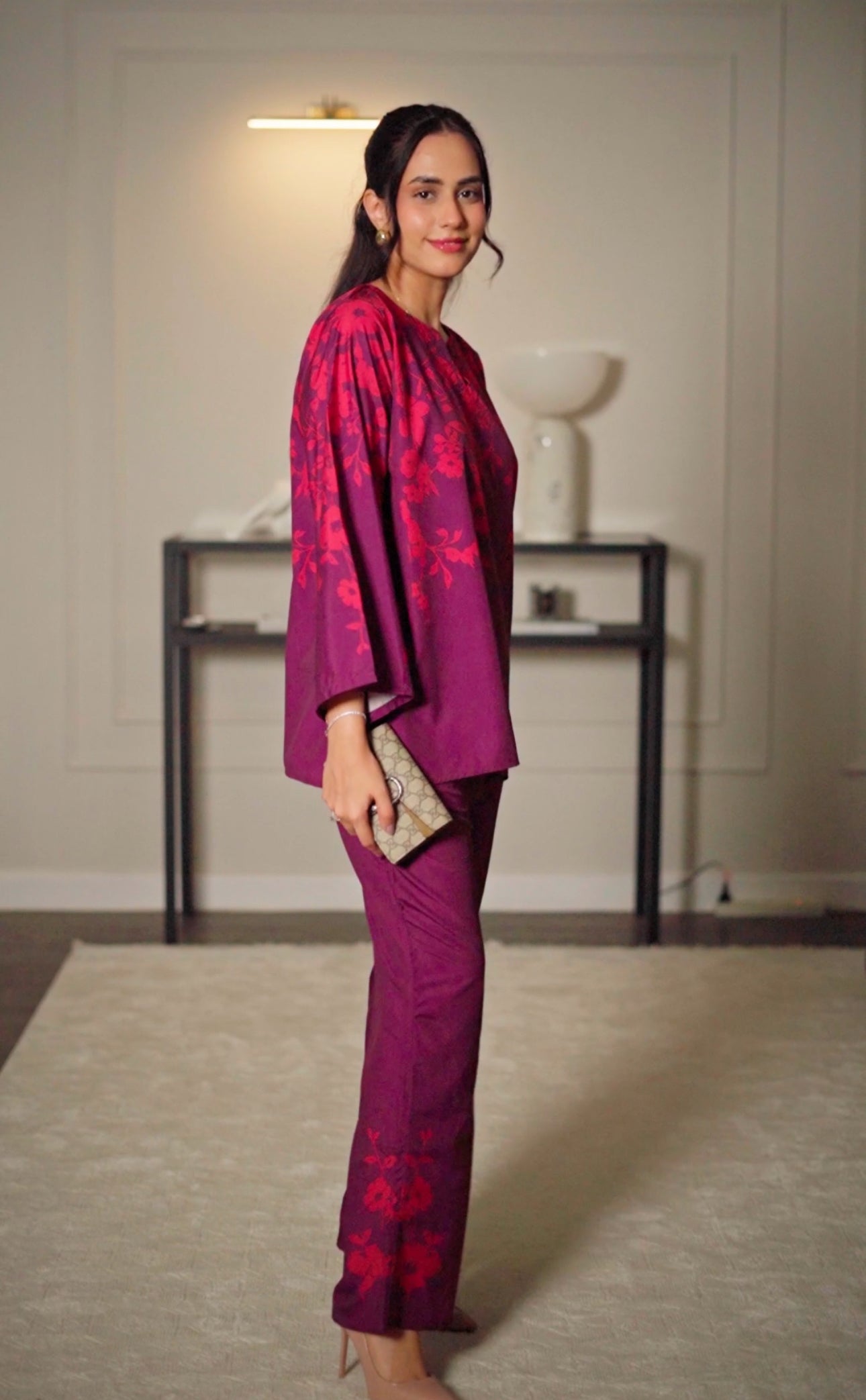 The radiant ensemble offers a unique and stylish look for any special occasion. This 2-piece suit features a chic contemporary short shirt with minimal floral prints. The matching trousers make it a trendy outfit to style at fun gatherings.