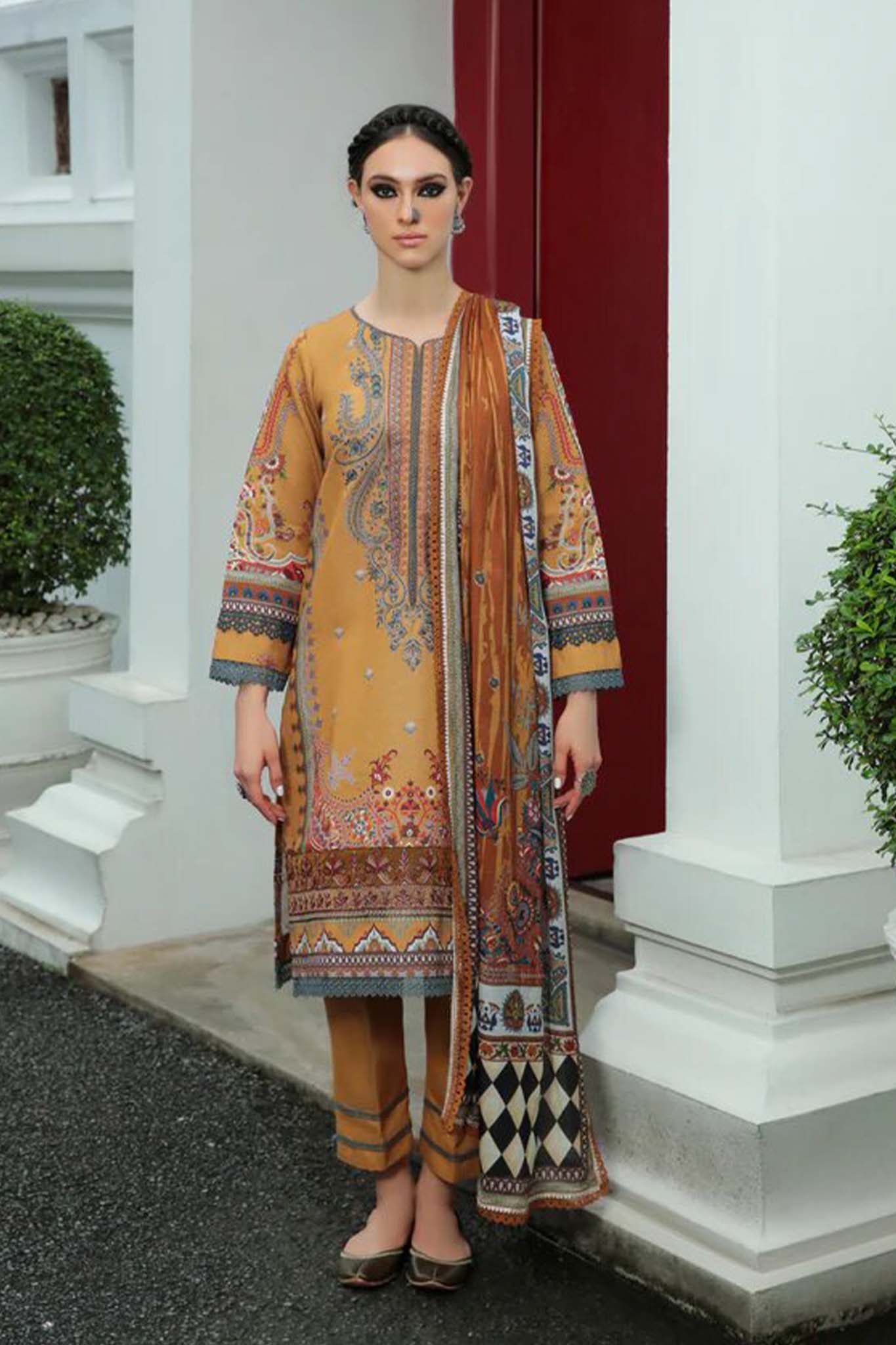 Digital Printed Silk Karandi Embroiderd Front 1.10 Mtr Digital Printed Silk Karandi Back & Sleeves 1.80 Mtr Digital Printed Twill...