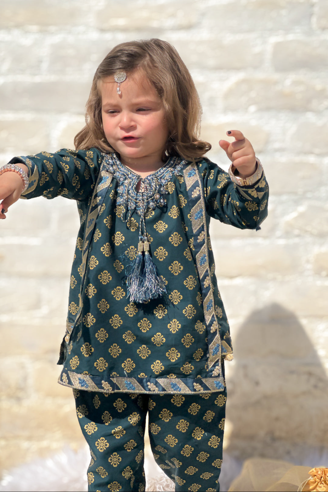 Elevate your child's fashion game with Khanak's Embroided Stitched Cotton Shirt and Trouser set. Crafted specifically for kids, this sophisticated ensemble showcases high-quality cotton jacquard fabric, offering a perfect blend of style and comfort. Ideal for both casual and semi-formal events, it’s a must-have addition to their wardrobe.This product is designed for all seasons.