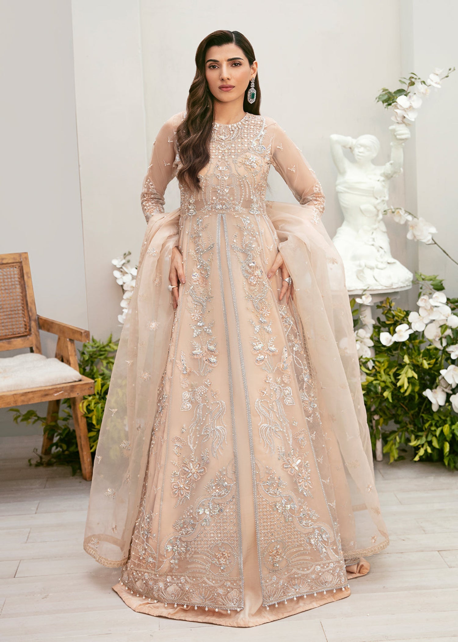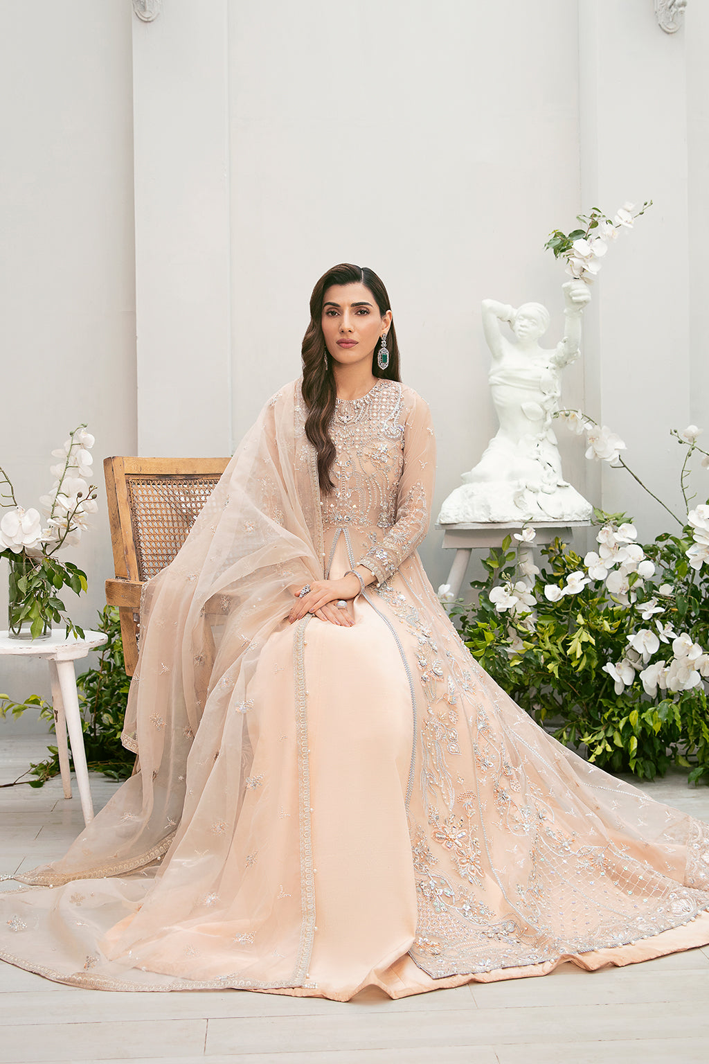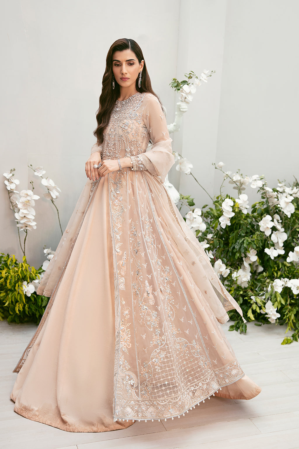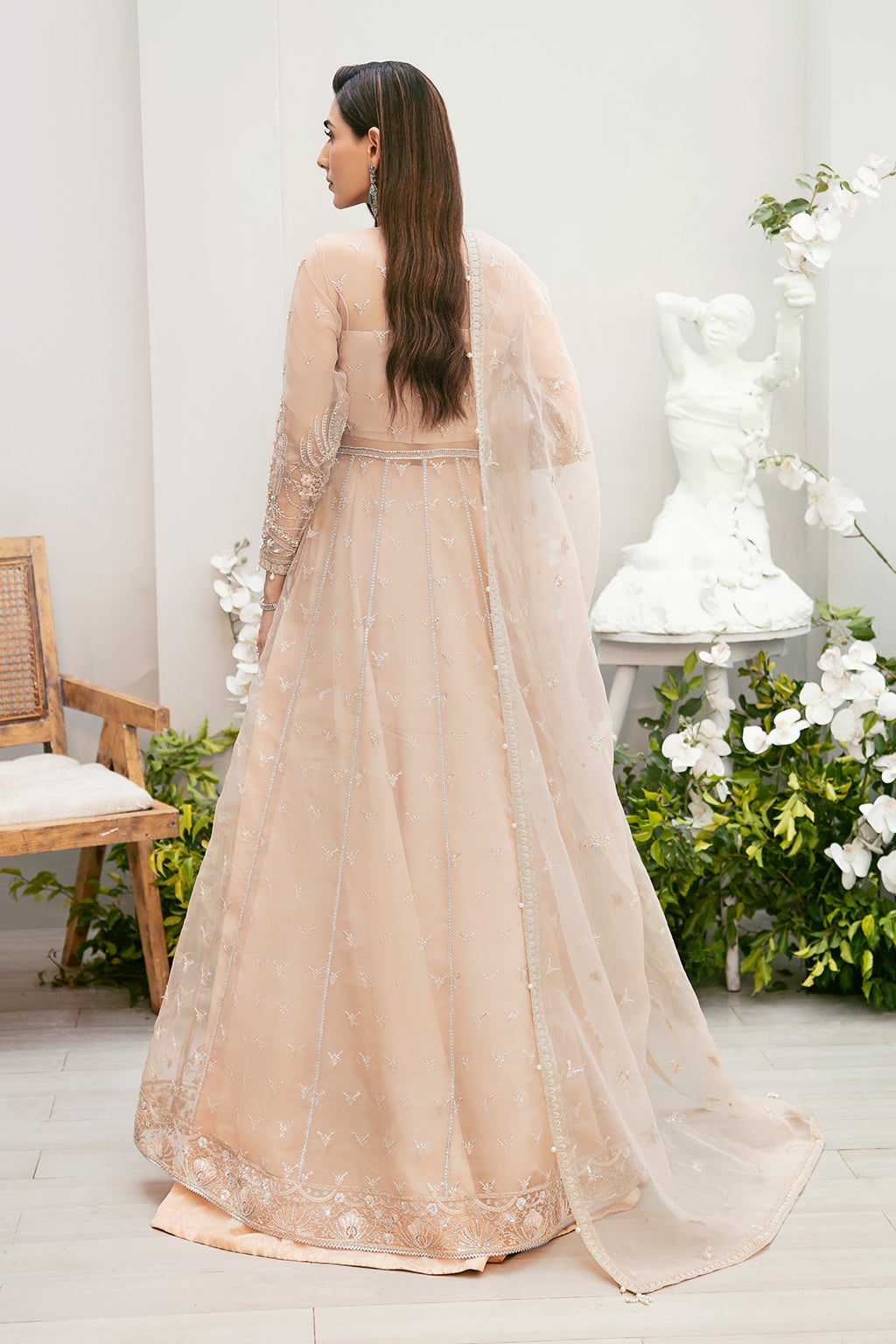 Organza Embroidered Dupatta 2.88 Yard Organza Embroidered & hand embellished front Bodice 01 Piece Organza Embroidered Back Bodice 01 Piece Organza Embroidered & hand embellished Sleeves 02 Pieces Organza Embroidered & hand embellished front left Panel 01 Piece Organza Embroidered & hand embellished front right Panel 01 Piece Organza Embroidered & hand embellished side left panels 02 Pieces Organza Embroidered & hand embellished side right panels 02 Pieces Organza Embroidered Back Panels 06 pieces Organza Embroidered & hand embellished Front Hem Border 2.16 Yard Organza Embroidered back Hem Border 2.16 Yard Organza Embroidered dupatta pallu border 2.50 Yard Pk Raw SilkDyed PK Raw Silk 5.45 yard