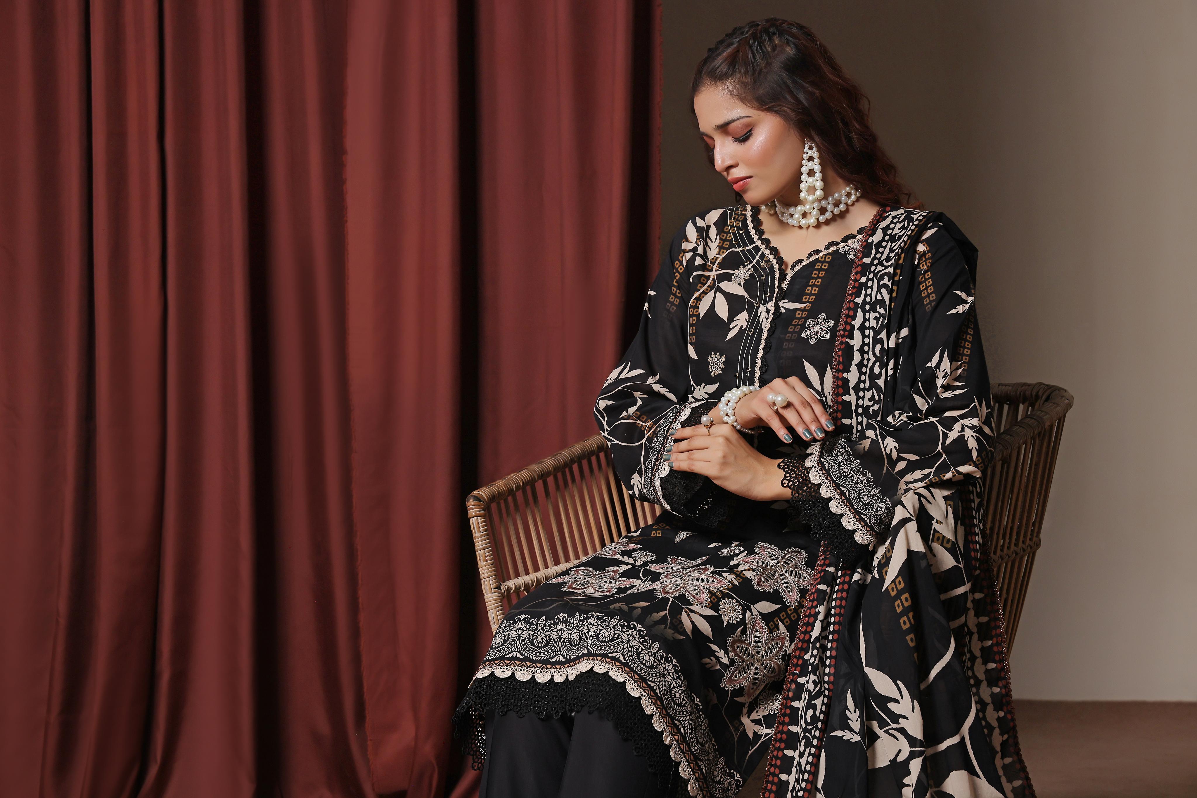 Made from Luxury Heavy Chiken-Kari Embroidered Slub Digital Print Lawn, the shirt features delicate embroidery over a digitally printed canvas, creating a perfect blend of tradition and trend.