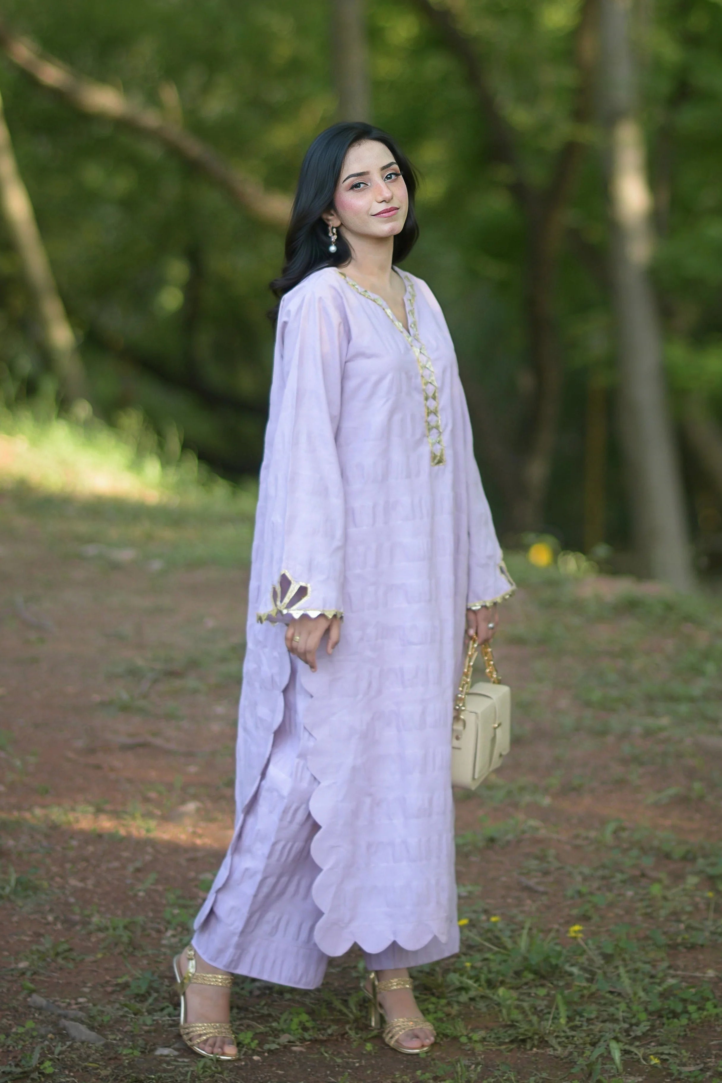 Upgrade your everyday style with this premium 2-piece suit crafted from breathable cotton with a seersucker texture for ultimate comfort and elegance. Featuring intricate handmade golden zari work on the placket and sleeves, paired with beautifully finished kangora detailing on the daman and sides, this outfit blends tradition with modern sophistication. Perfect for casual wear, summer outings, and semi-formal occasions.