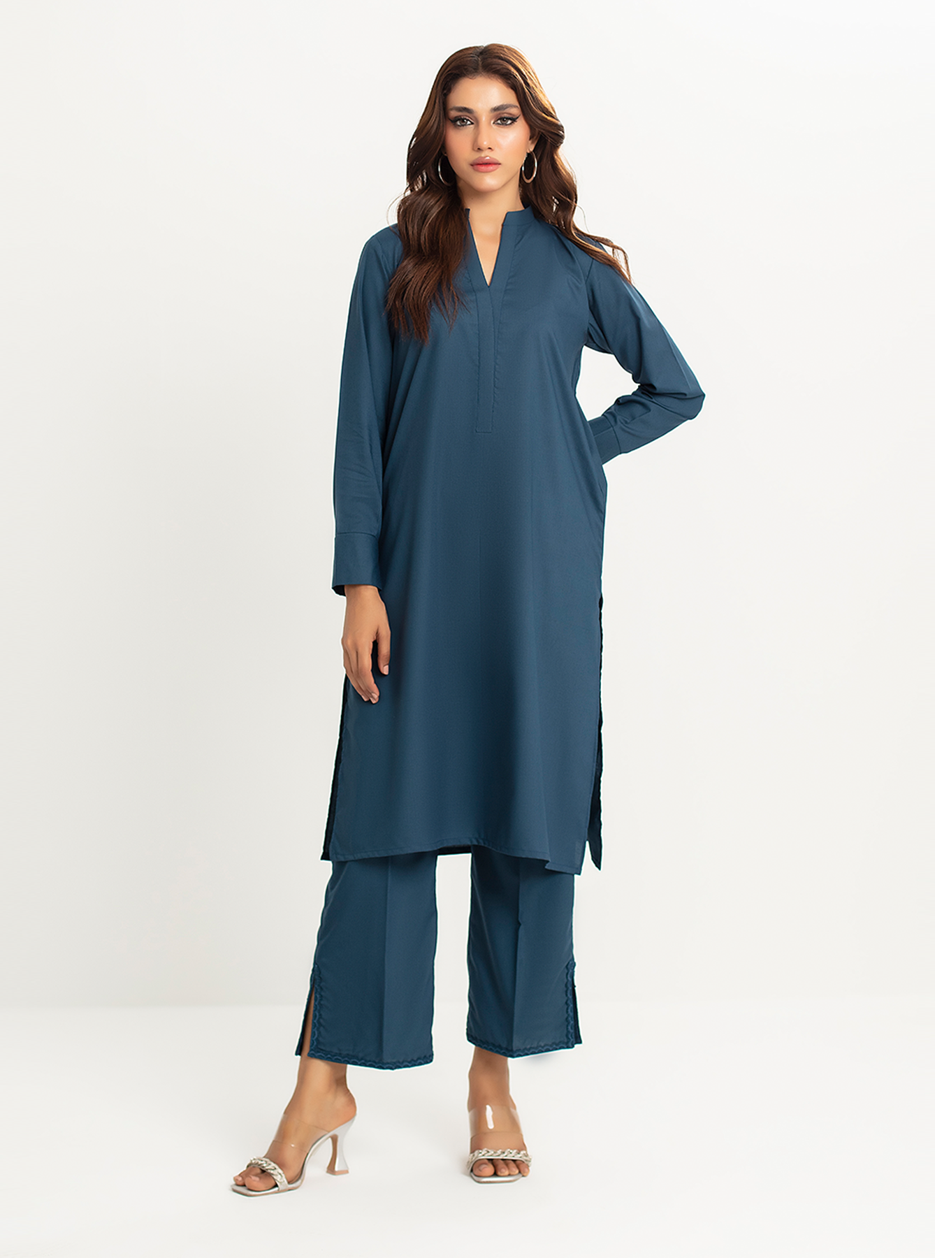 Introducing the all new "Impressive Co-Ord Set" in a timeless steel blue color, featuring an aesthetic overlap neck and chic cuff-style sleeves. This attire seamlessly surpasses the realms of elegance and sophistication with its understated charm. The "Impressive Co-Ord Set" stands as the quintessence of style and couture, ideal for those seeking to leave a lasting impression.